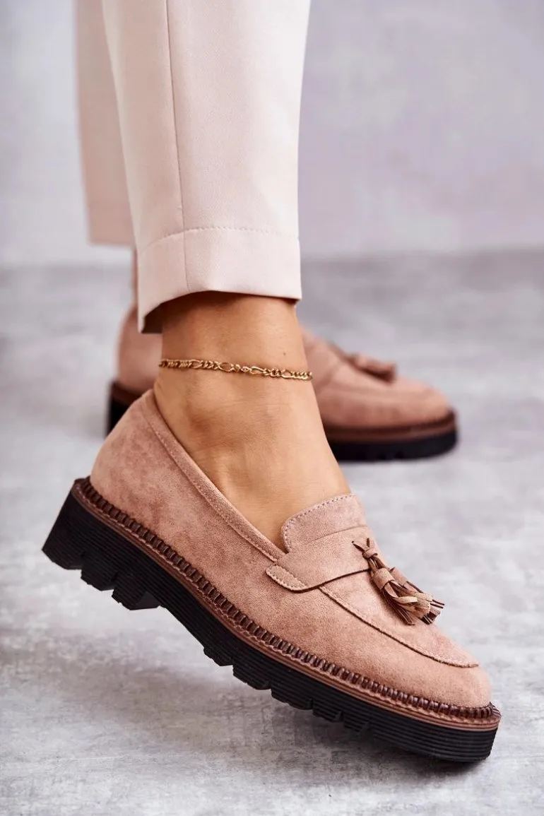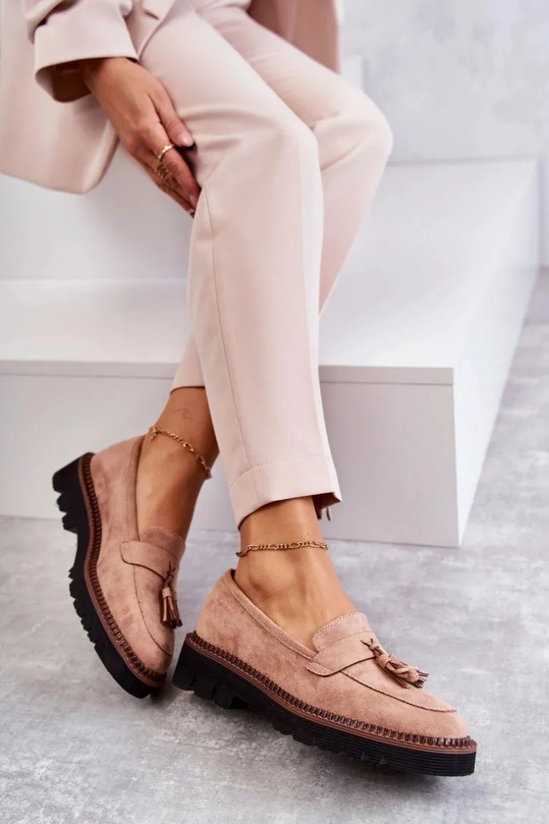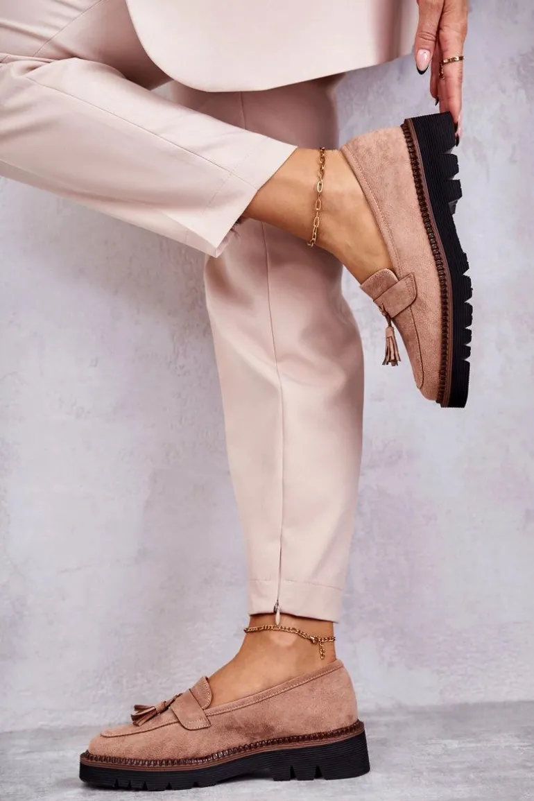 Klasyczne półbuty zostały wykonane z wysokiej jakości zamszowej skóry ekologicznej. Na przodzie charakterystyczne zdobienie w postaci frędzelka. Buty te posiadają platformę oraz płaski obcas. Podeszwa ze żłobieniami świetnie odizoluje od nierównego podłoża. Świetny model do wielu stylizacji! Wygodne, a zarazem modne. Koniecznie musisz je mieć! Przy wyborze rozmiaru prosimy sugerować się tabelą rozmiarów.