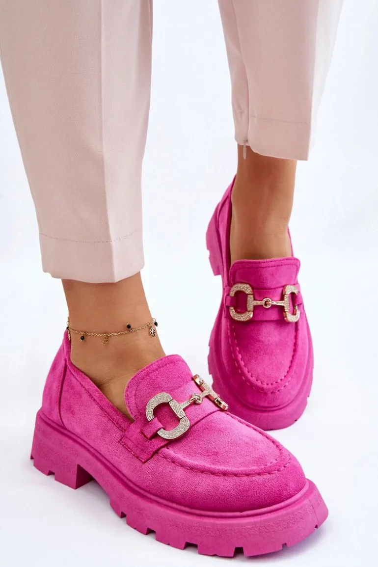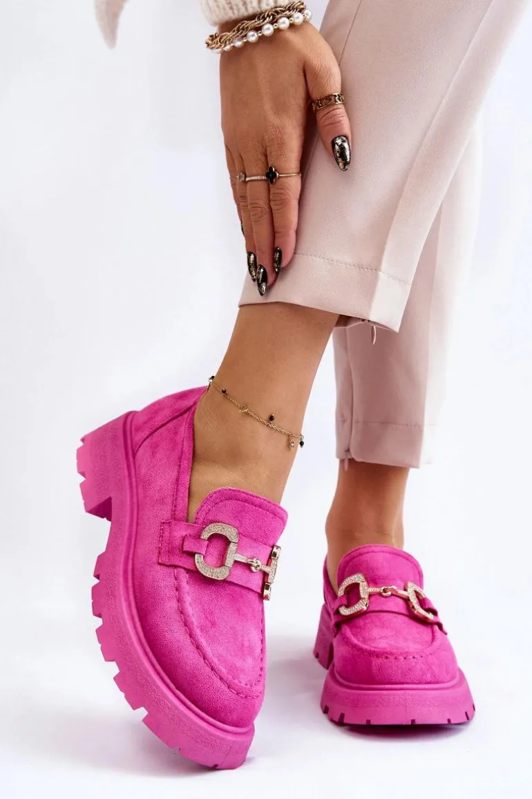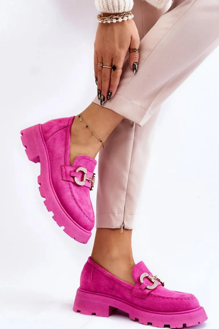 Damskie Zamszowe Półbuty Na Platformie Z Ozdobą Różowe Deira
