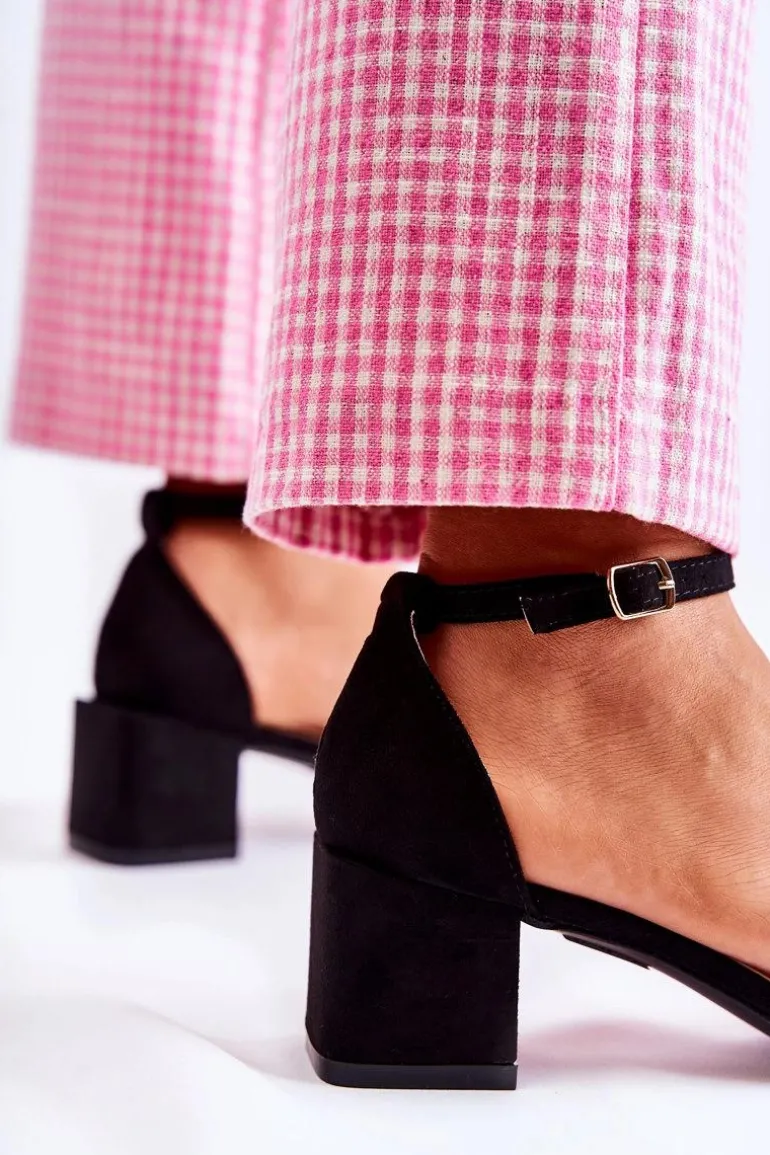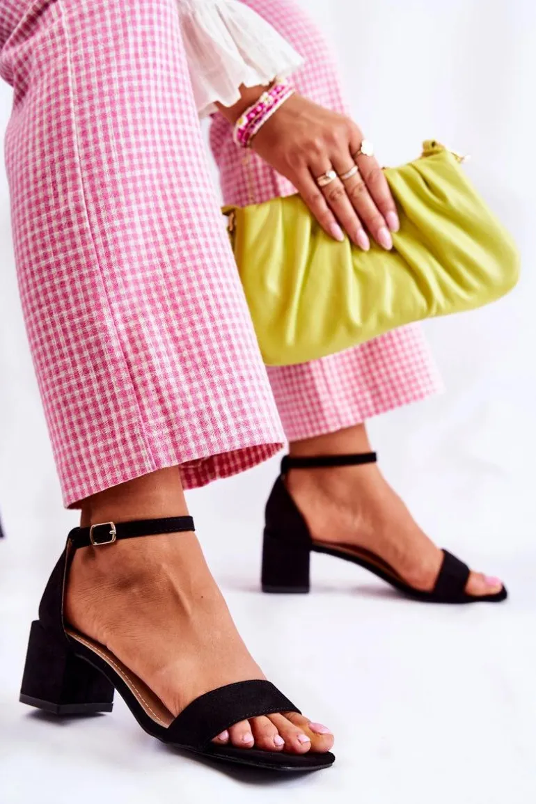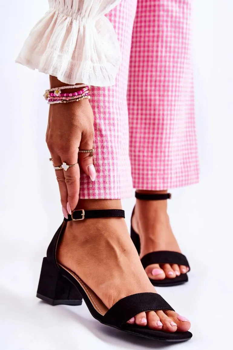 Damskie Zamszowe Sandały Na Obcasie Czarne Tellis