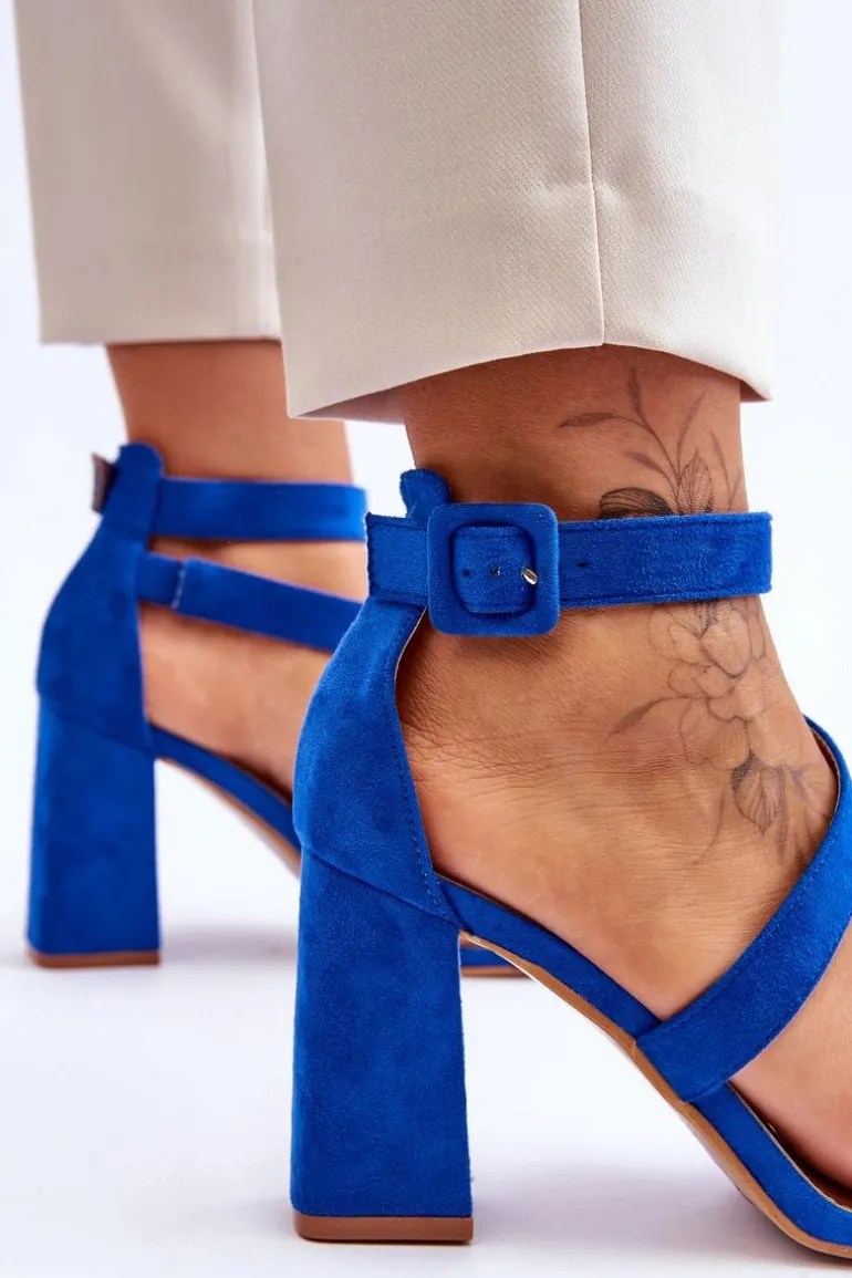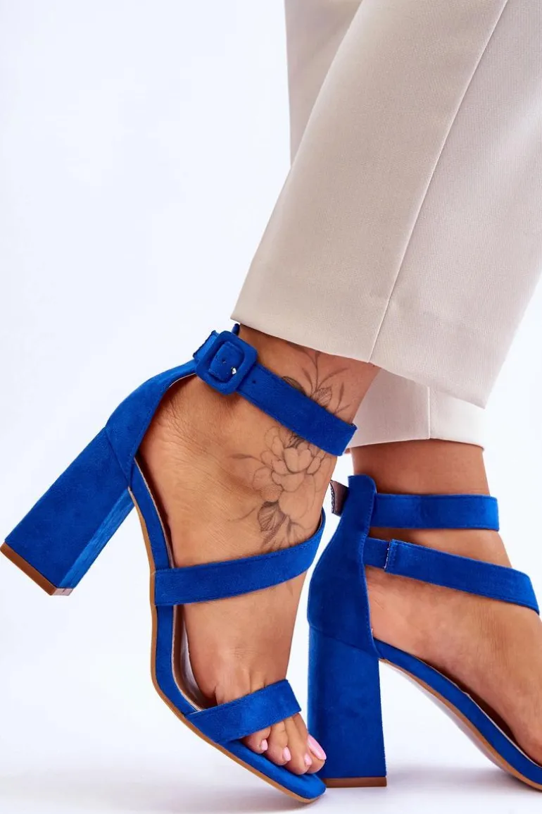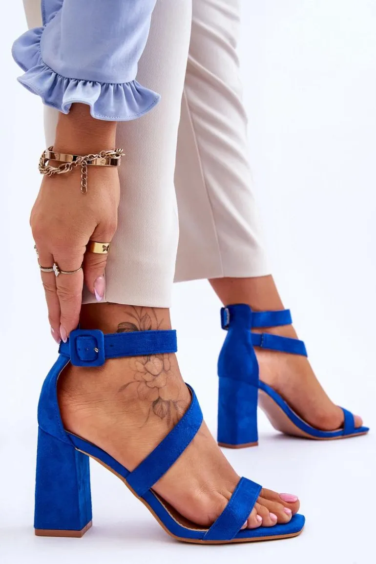 Damskie Zamszowe Sandały Na Obcasie Niebieskie Lanes