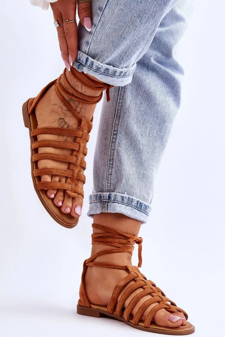 Damskie Zamszowe Sandały Rzymianki Camel Sempre