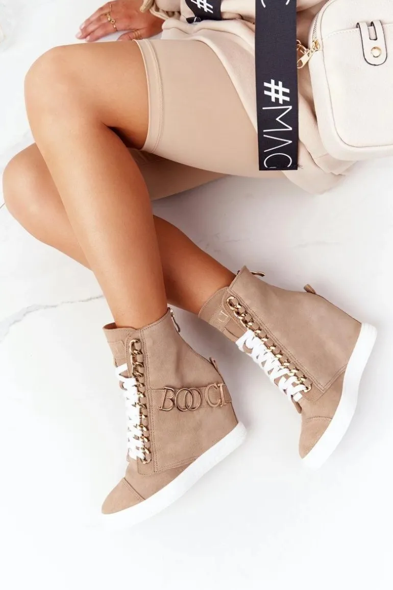 Damskie Zamszowe Sneakersy BOOCI Złote Litery Jasny Camel