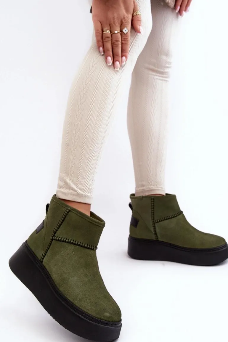 Damskie Zamszowe Śniegowce Maciejka 06257-24 Oliwkowe