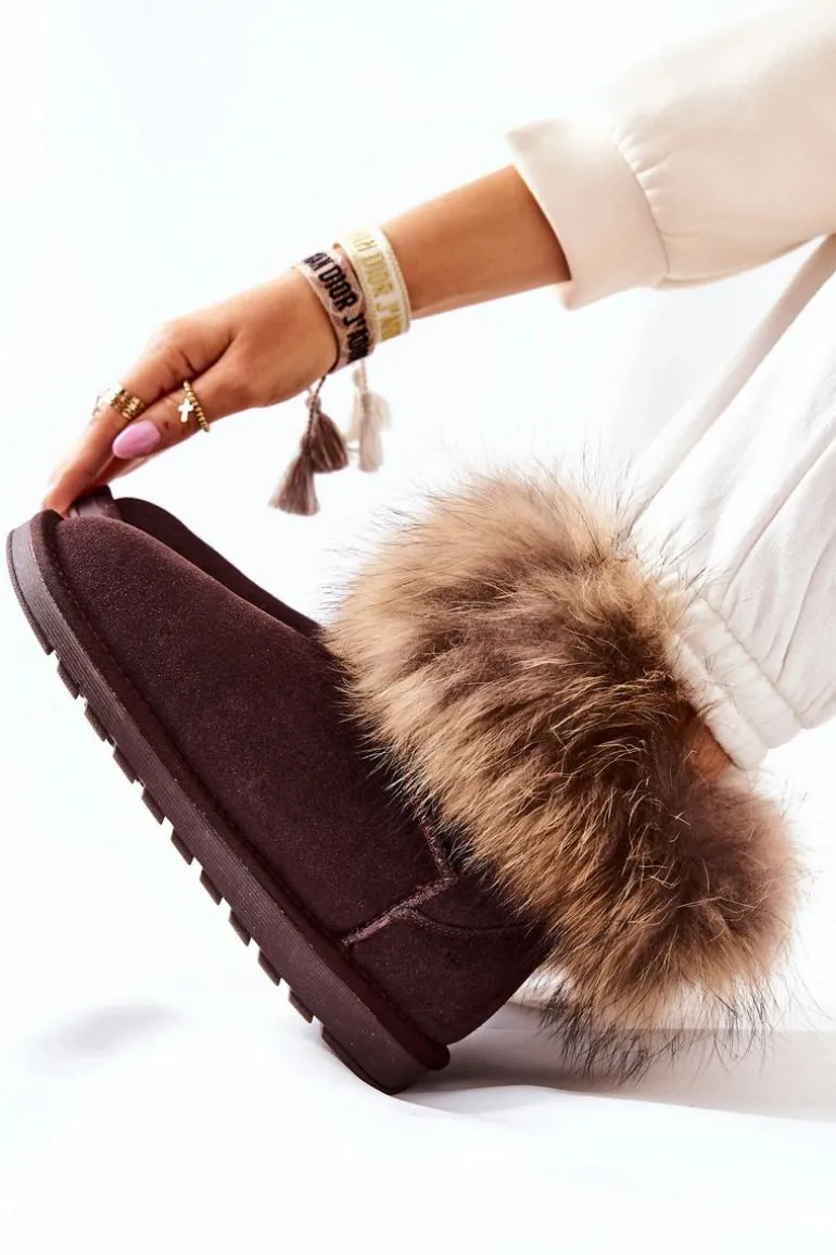 Śniegowce to idealny wybór na chłodne dni. Buty wykonane są z naturalnej skóry zamszowej. Futerko wokół kostki jest naturalne natomiast wnętrze zostało ocieplone grubym eko futerkiem. Koniecznie sprawdź całą naszą kolekcję śniegowców! Przy wyborze rozmiaru prosimy kierować tabelą rozmiarów.