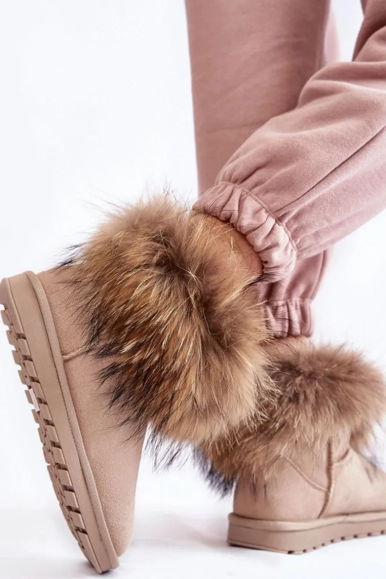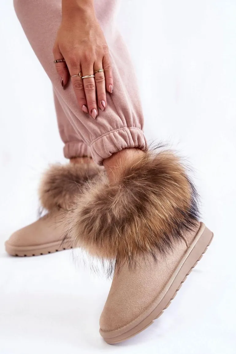 Damskie Zamszowe Śniegowce Z Futerkiem Jasnobeżowe Alexa