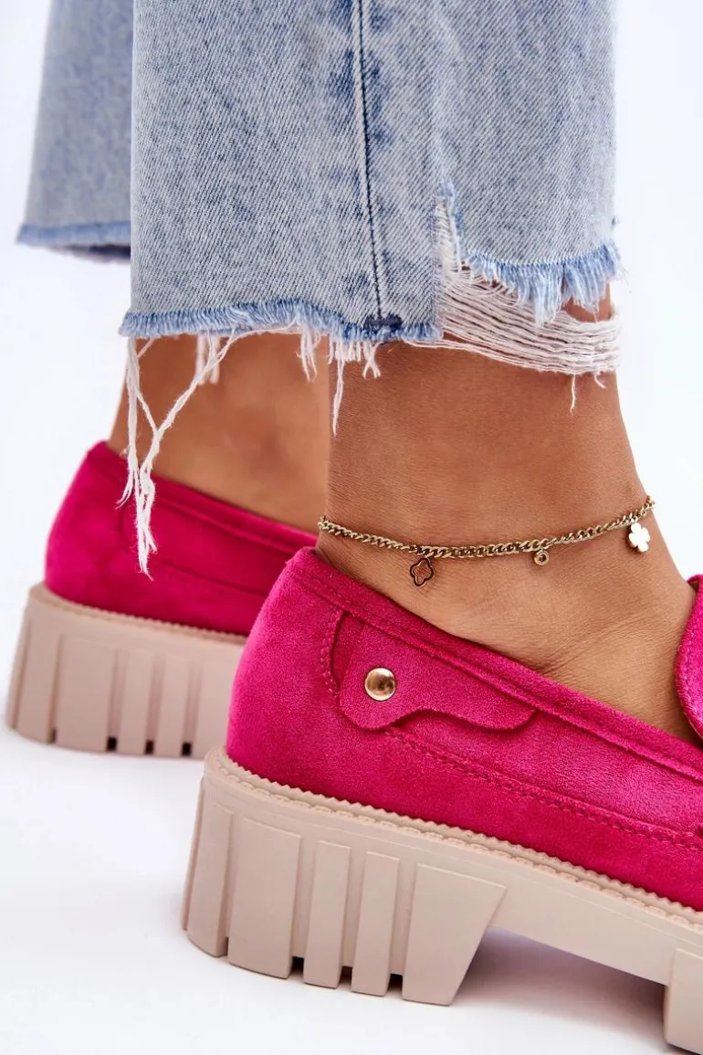 Świetne półbuty w stylu loaferów zostały wykonane z wysokiej jakości eko skóry z obszyciami. Charakterystyczne zdobienie w postaci paseczka na przodzie oraz nitu z boku cholewki. Posiadają masywną platformę oraz płaski obcas. Miękka wykonana z eko skóry wkładka zadba o komfort podczas użytkowania obuwia. Dodatkowo zapiętek jest usztywniany. Przy wyborze rozmiaru prosimy sugerować się tabelą rozmiarów.