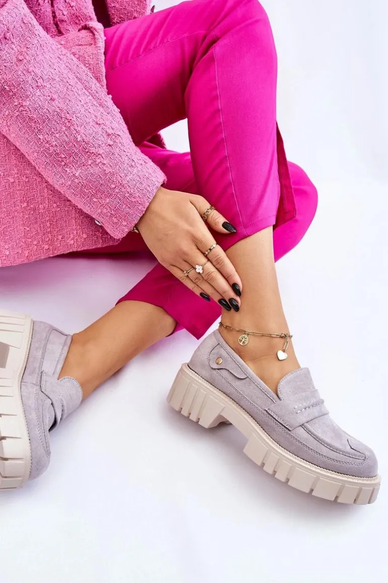 Świetne półbuty w stylu loaferów zostały wykonane z wysokiej jakości eko skóry z obszyciami. Charakterystyczne zdobienie w postaci paseczka na przodzie oraz nitu z boku cholewki. Posiadają masywną platformę oraz płaski obcas. Miękka wykonana z eko skóry wkładka zadba o komfort podczas użytkowania obuwia. Dodatkowo zapiętek jest usztywniany. Przy wyborze rozmiaru prosimy sugerować się tabelą rozmiarów.