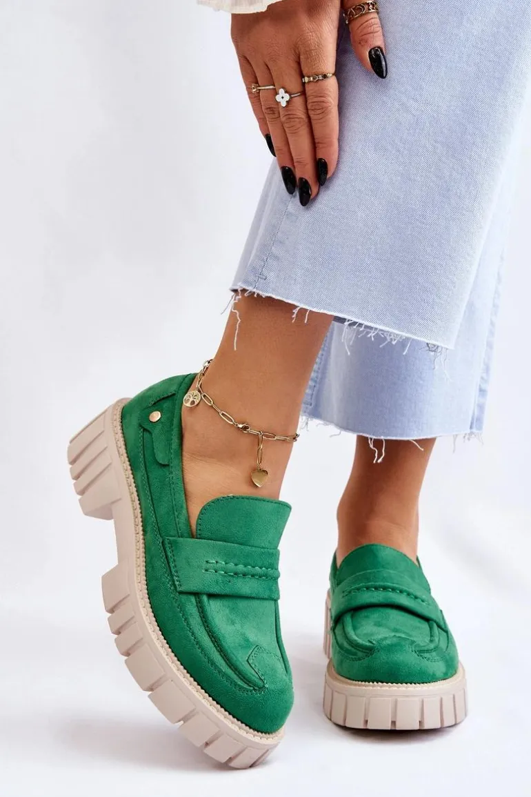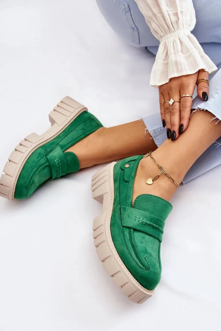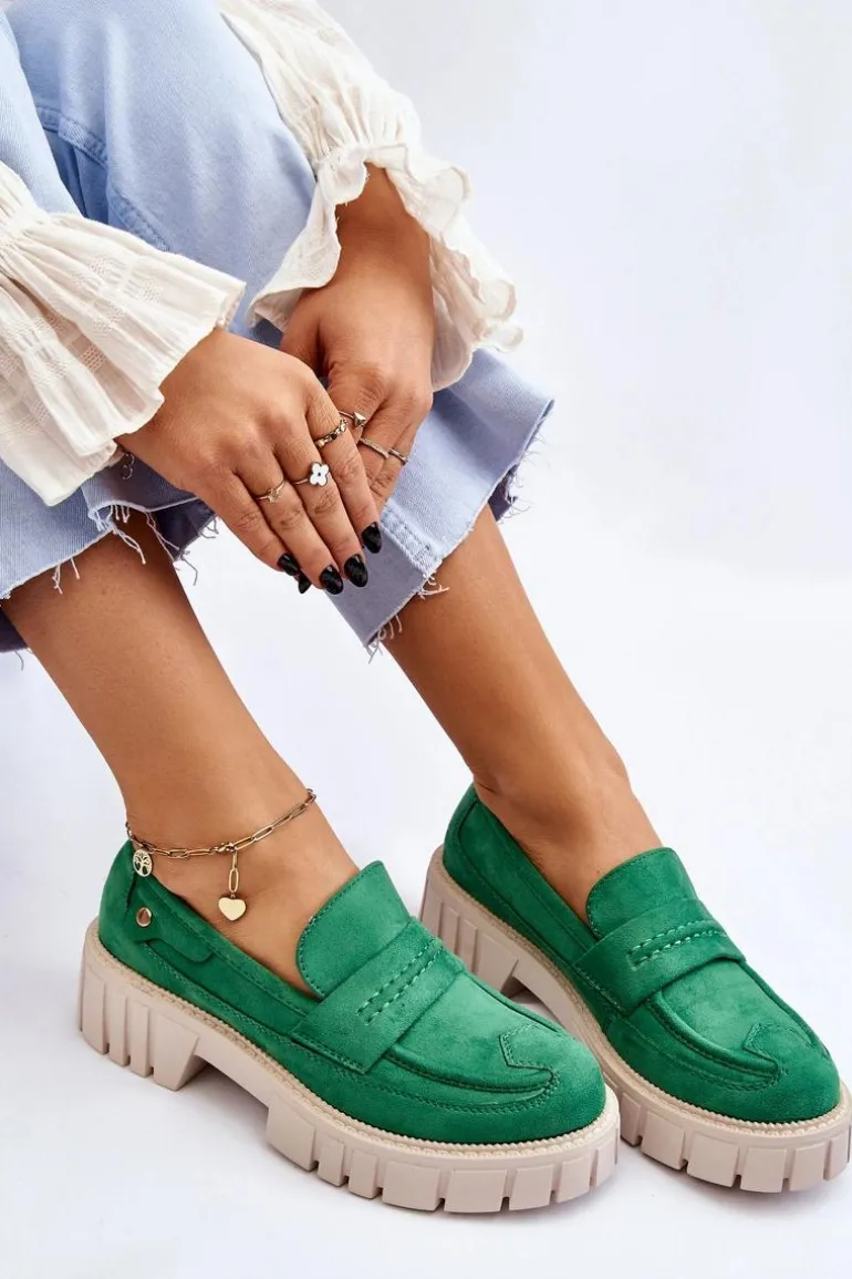 Damskie Zamszowe Wsuwane Półbuty Zielone Fiorell