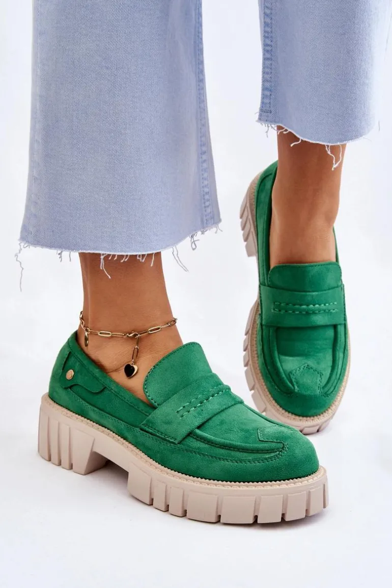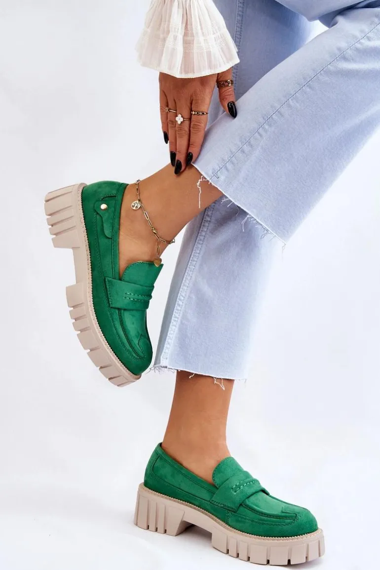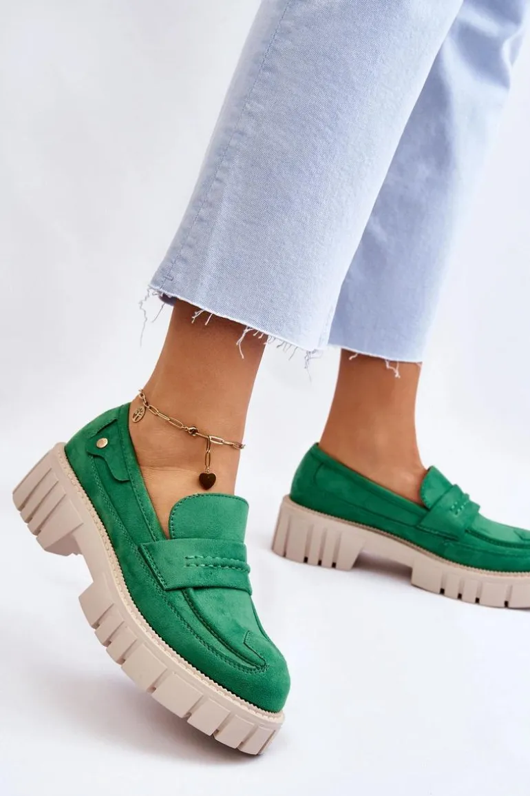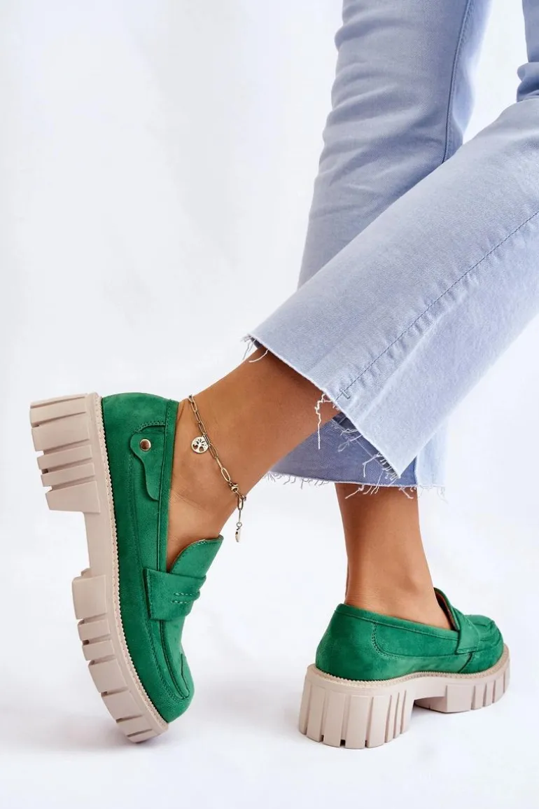 Damskie Zamszowe Wsuwane Półbuty Zielone Fiorell