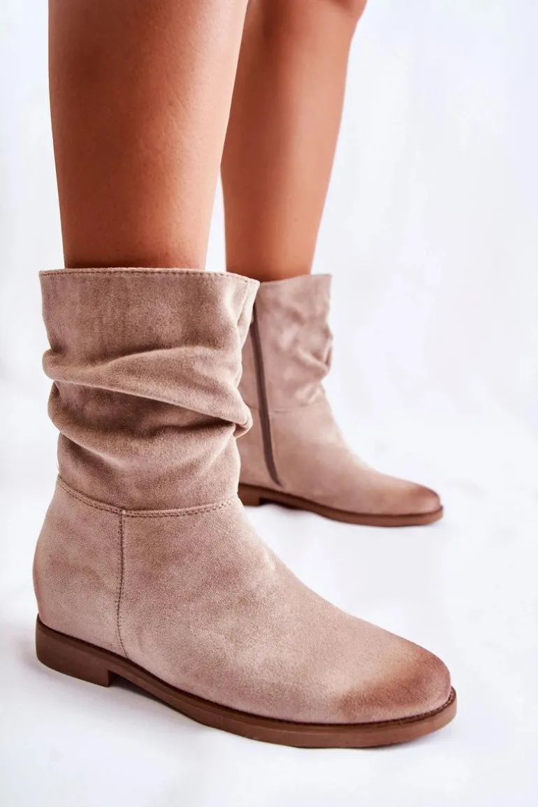 Botki damskie posiadają wysoką, lekko marszczoną cholewkę za kostkę. Zamykane na suwak. Wykonane z przyjemnego w dotyku eko zamszu. Wkładka została wykonana z tkaniny. Zapiętek usztywniany. Na nosku oraz z tyłu cholewki znajdują się modne przetarcia. Idealne na sezon wiosenno-jesienny. Model ten będzie świetnie prezentował się z jeansami czy zwiewną spódnicą. Przy wyborze rozmiaru prosimy sugerować się tabelą rozmiarów.
