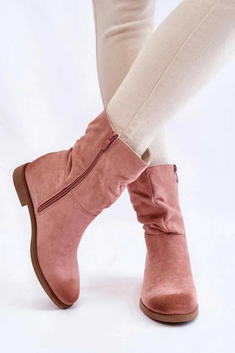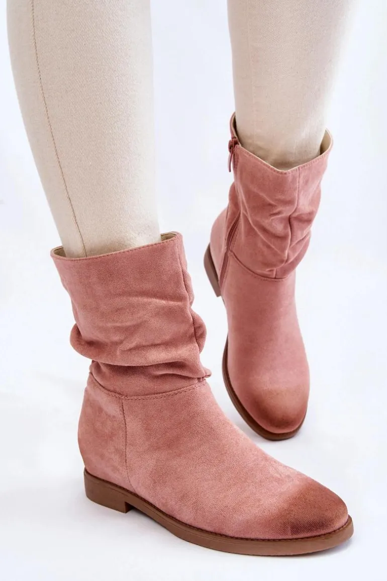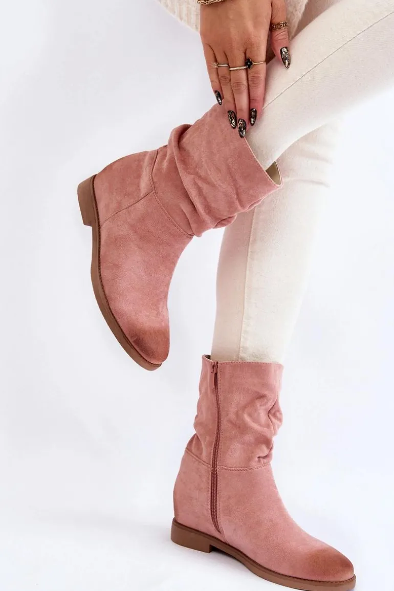 Damskie Zamszowe Wysokie Botki Różowe Venis