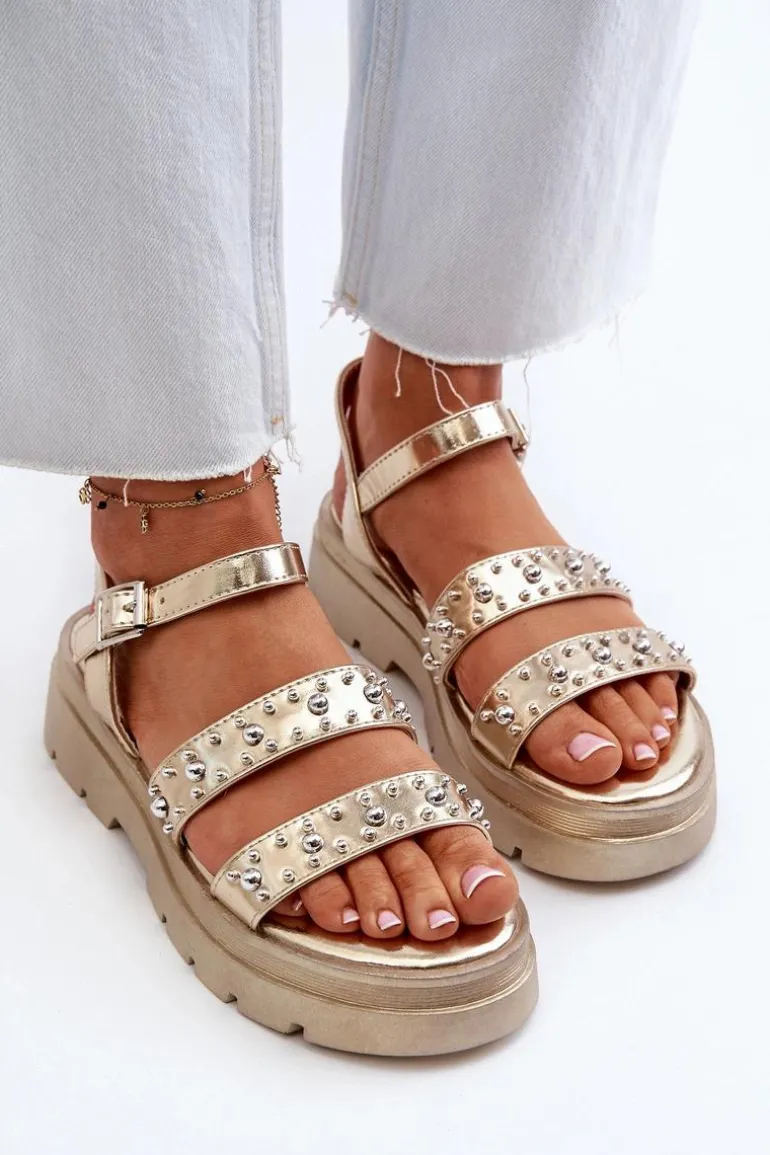 Damskie Zdobione Sandały Eko Skóra Złote Arcida