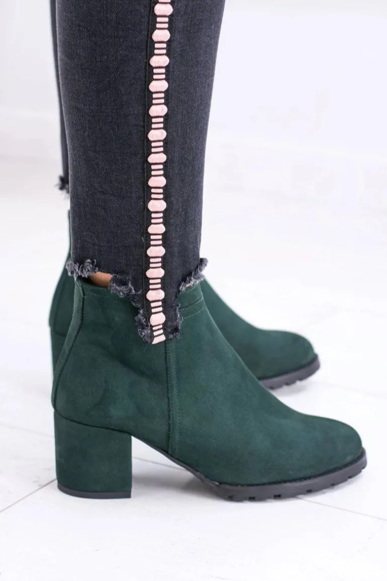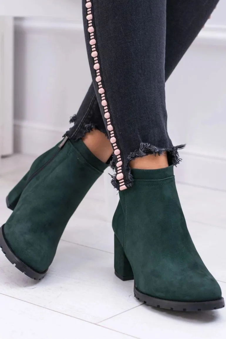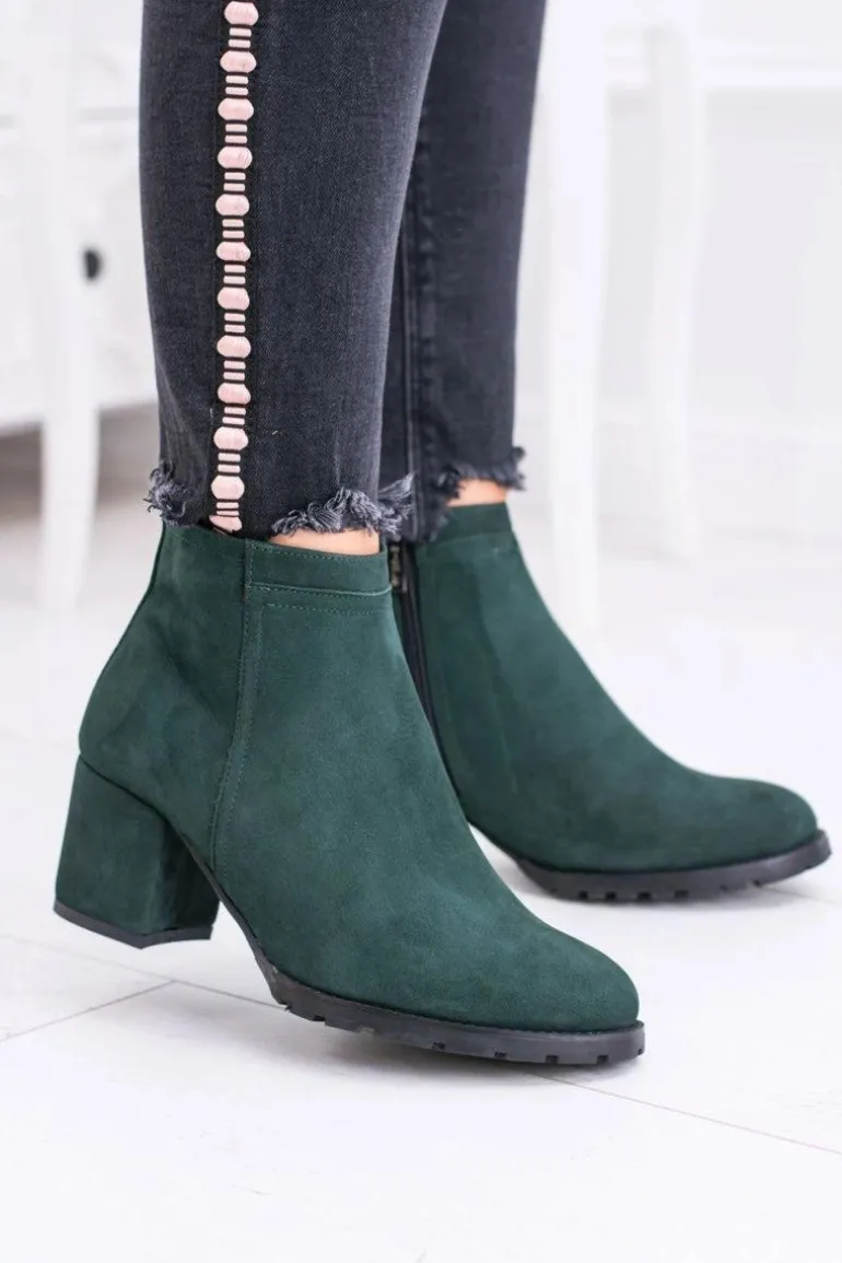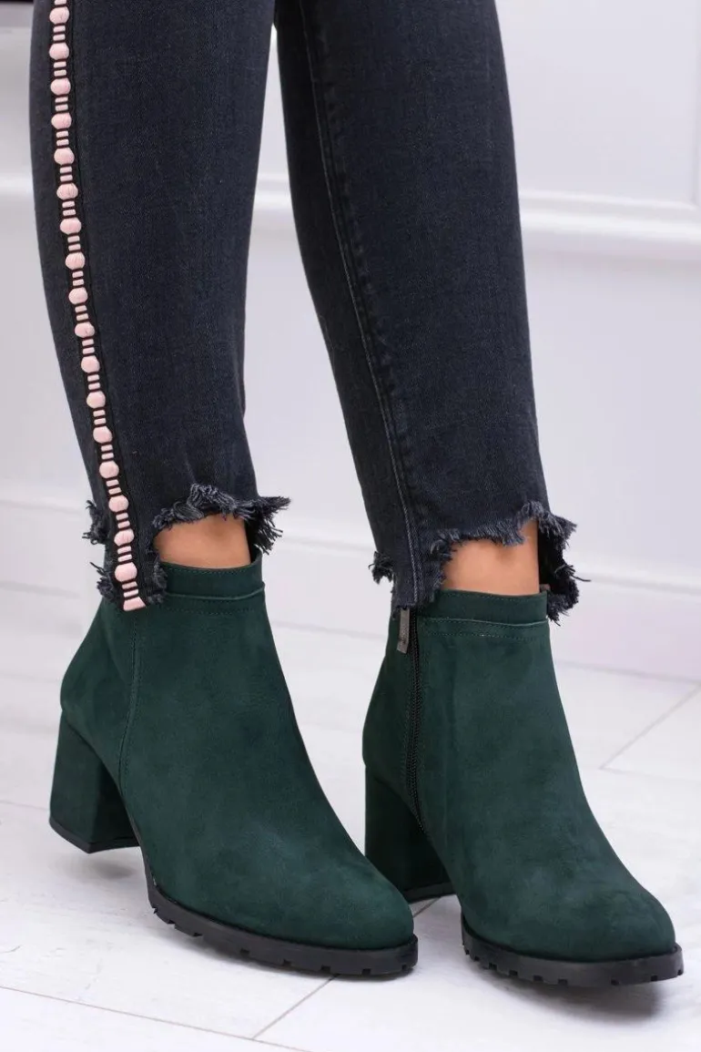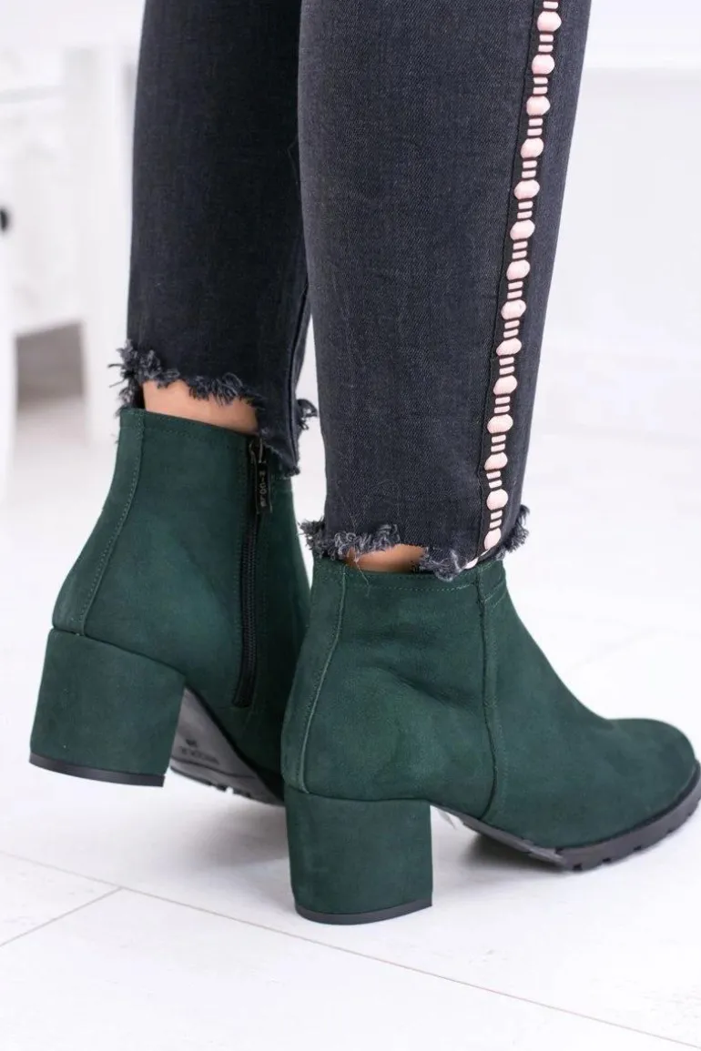 Damskie Zielone Skórzane Botki Na Słupku Nicole