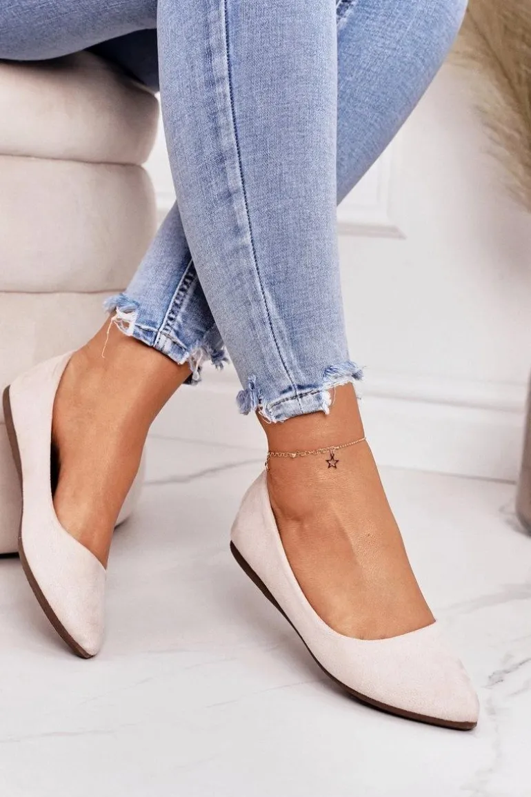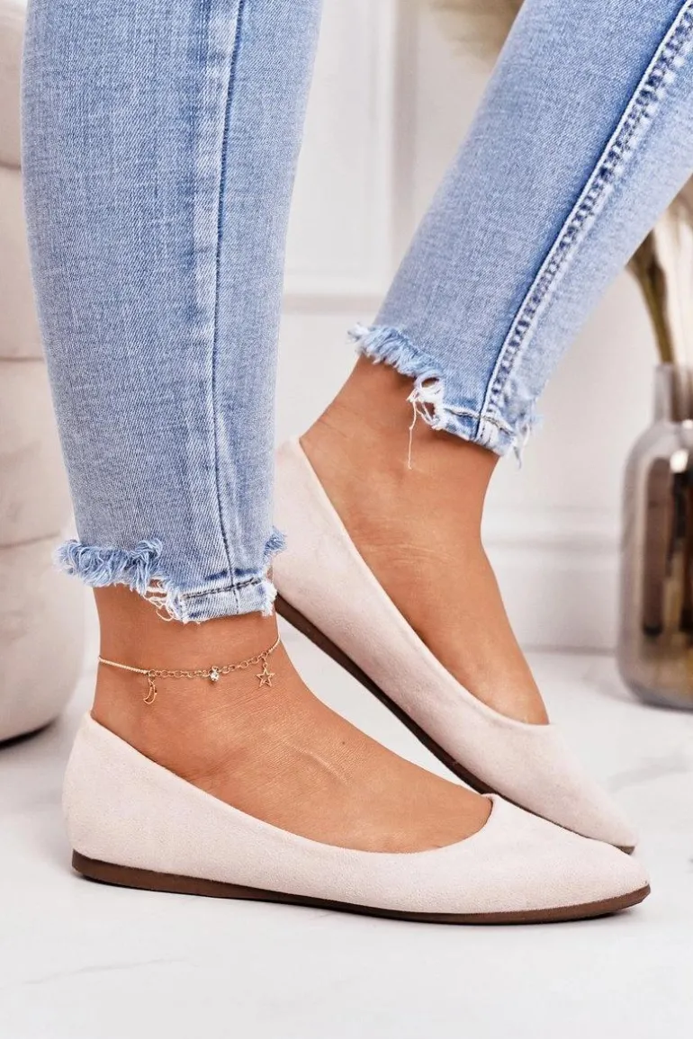 Delikatne Baleriny W Szpic Zamszowe Beżowe Dermeno
