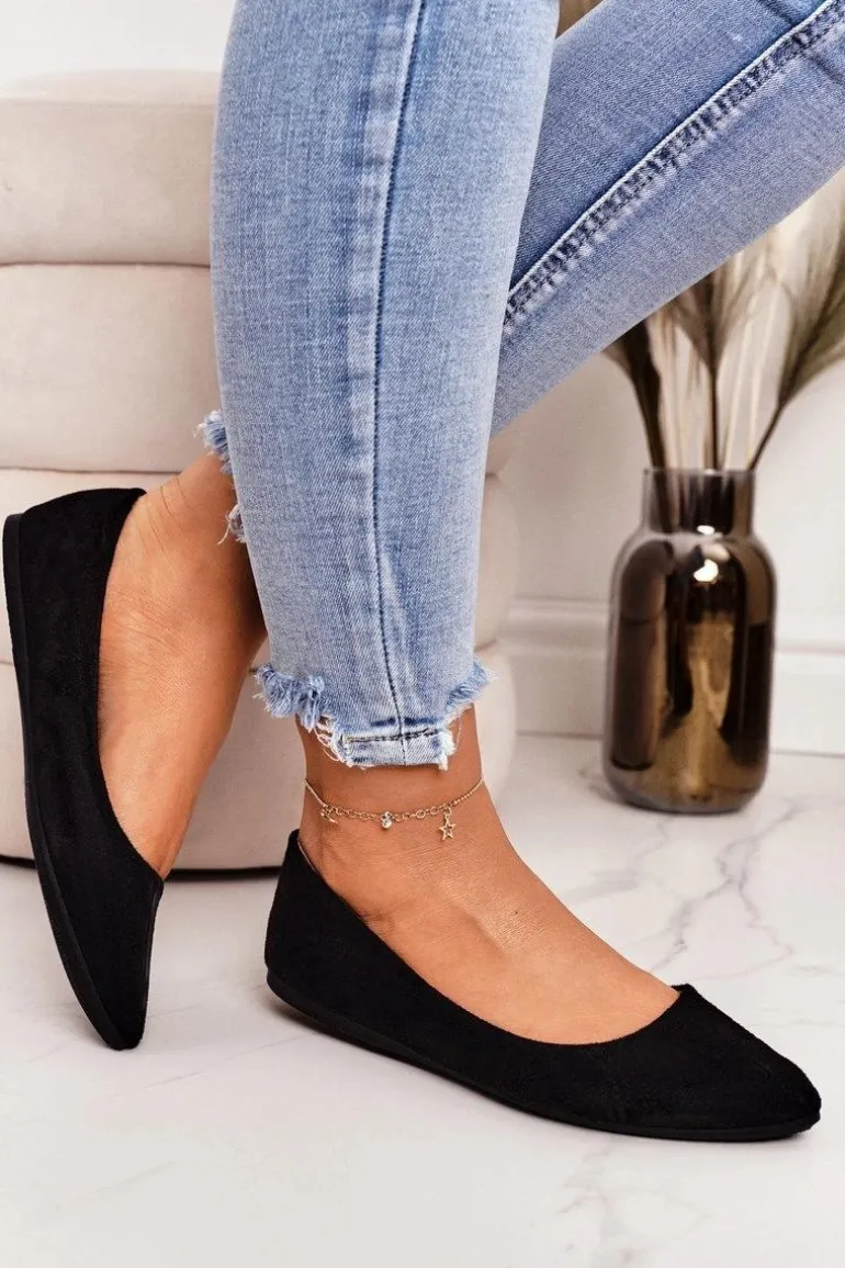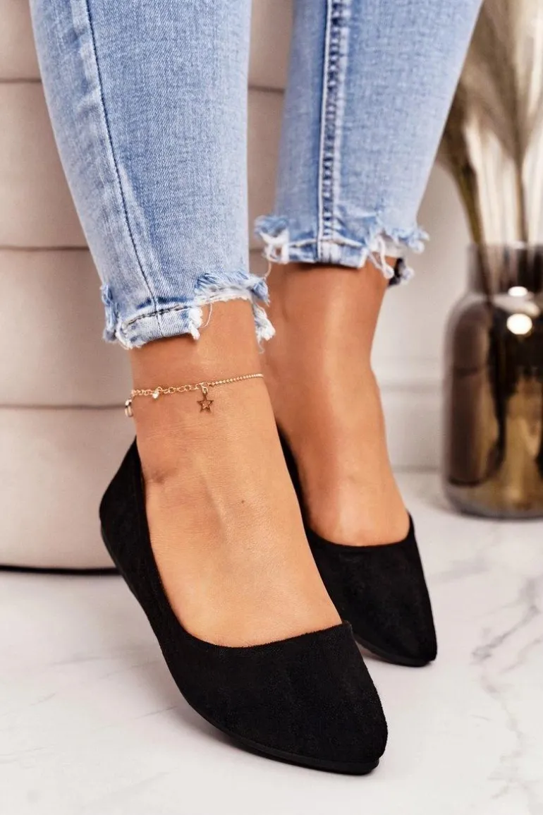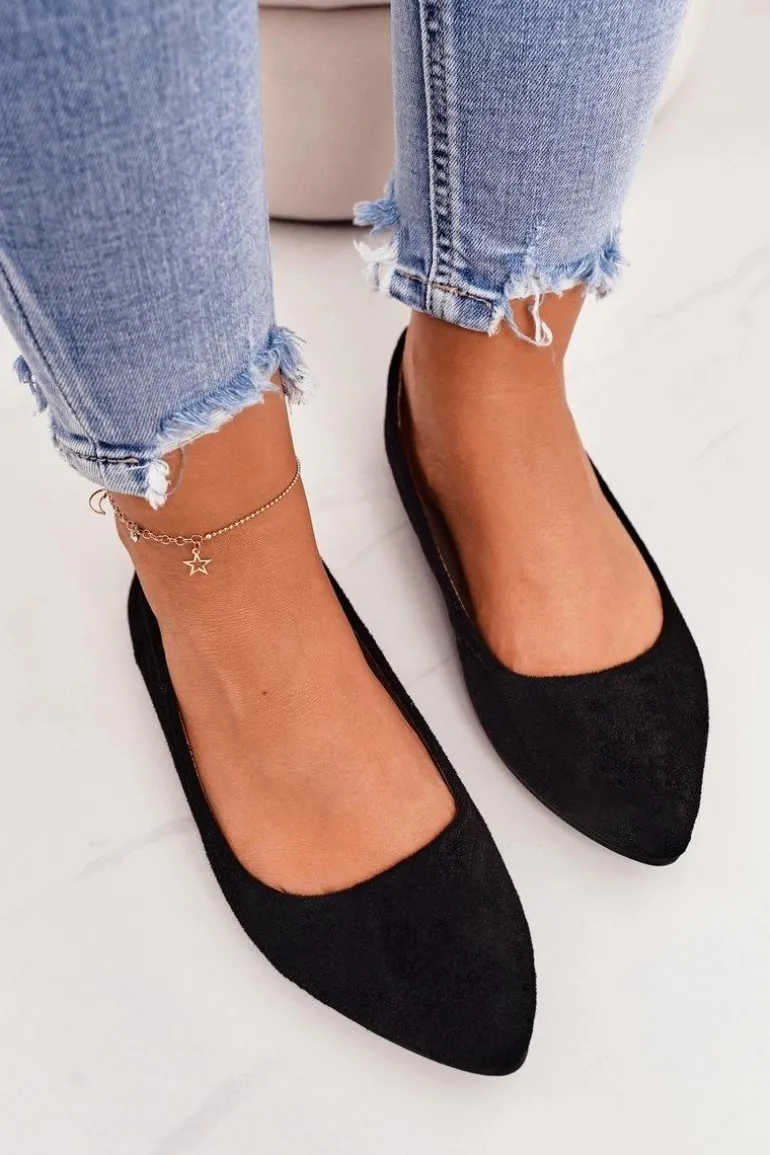 Delikatne Baleriny W Szpic Zamszowe Czarne Dermeno
