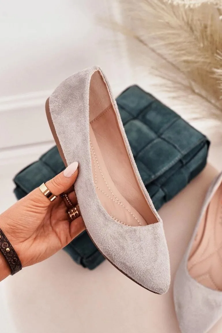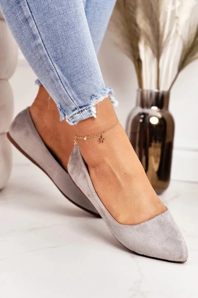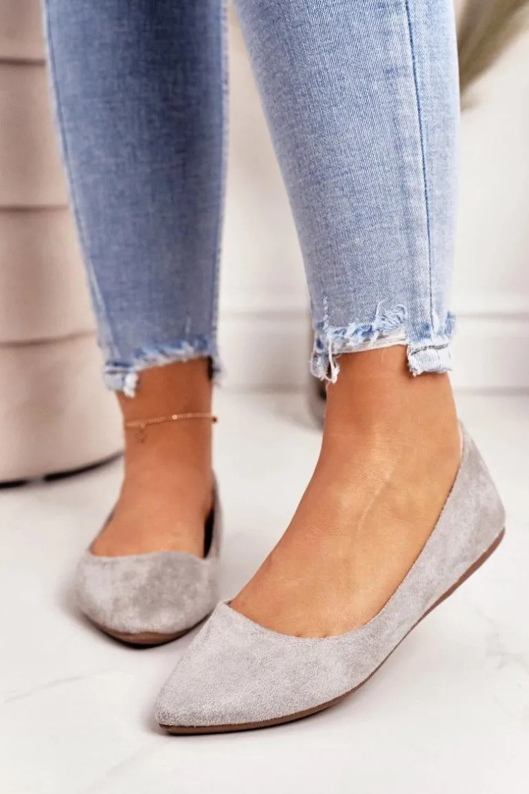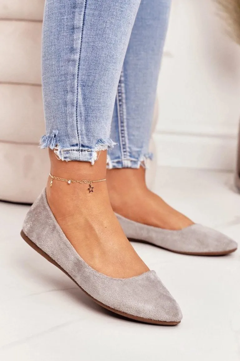 Delikatne Baleriny W Szpic Zamszowe Szare Dermeno