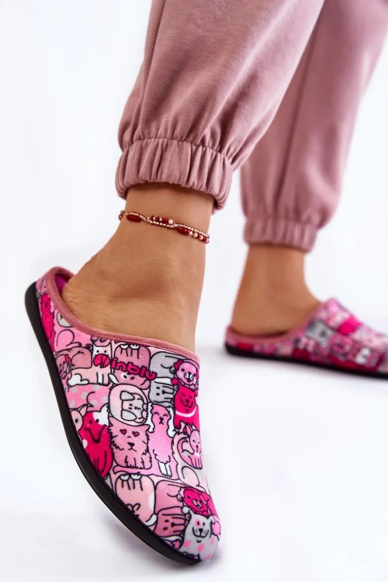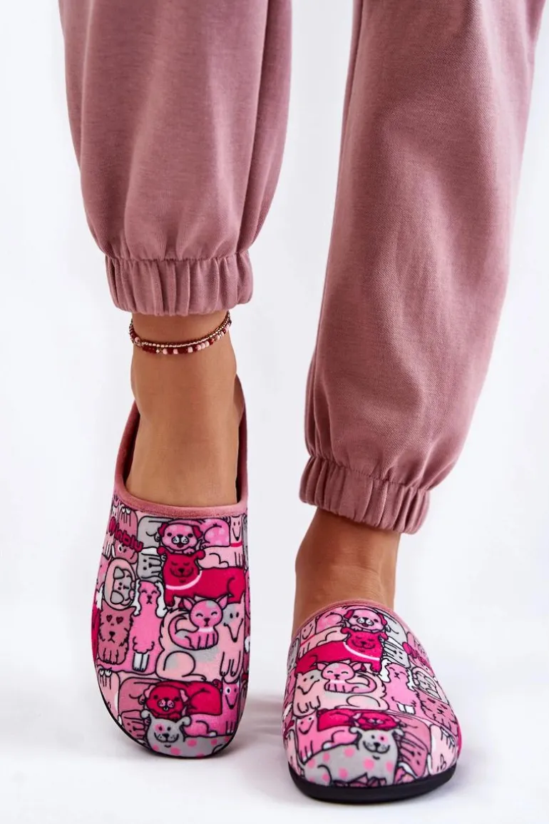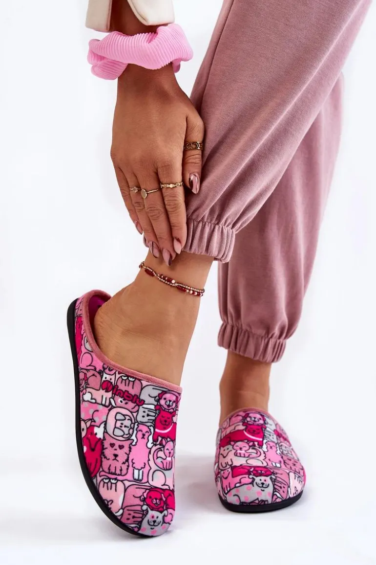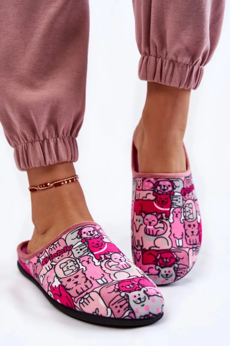 Domowe Klapki Papcie W Koty Inblu GF-12-023 Różowe