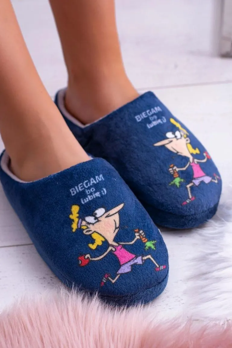 Dreex Pluszowe Damskie Granatowe Papcie Biegam Bo Lubię