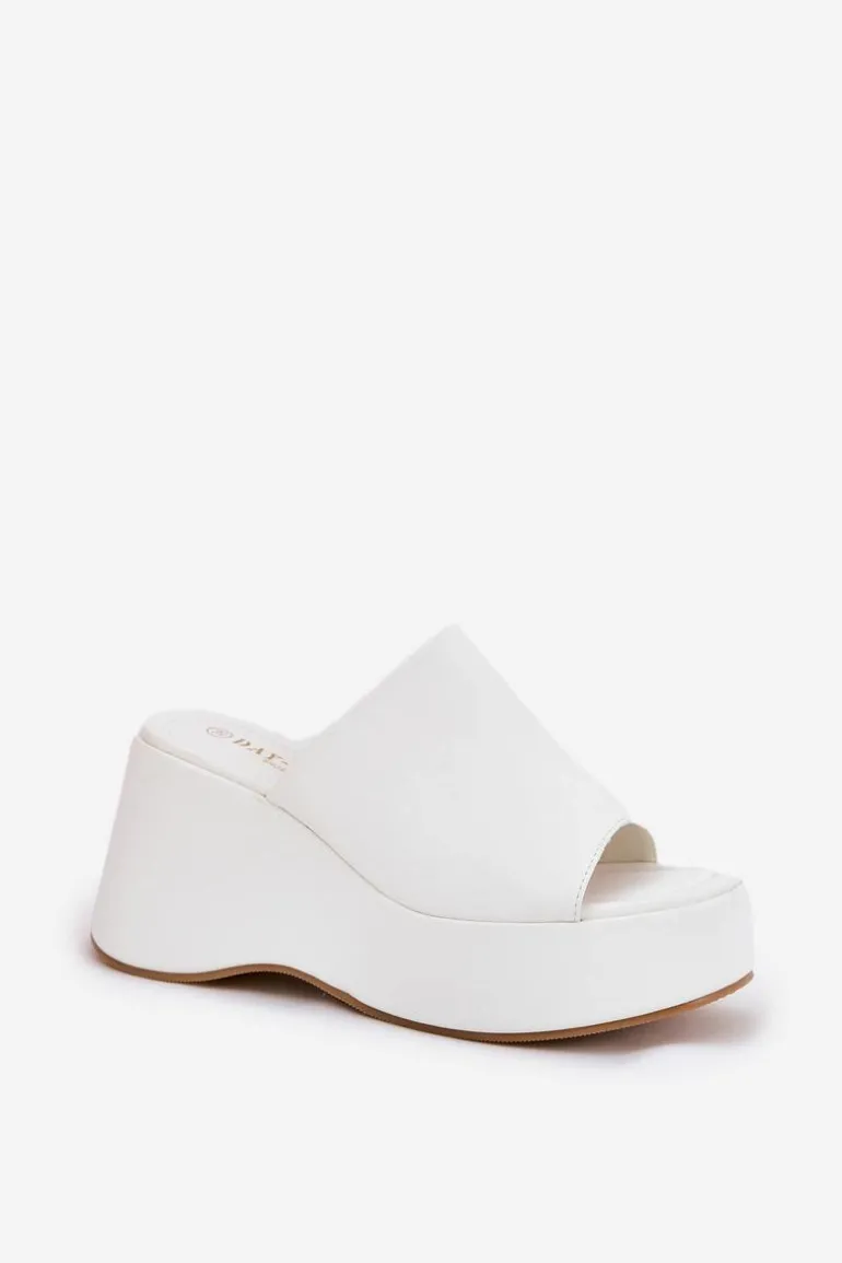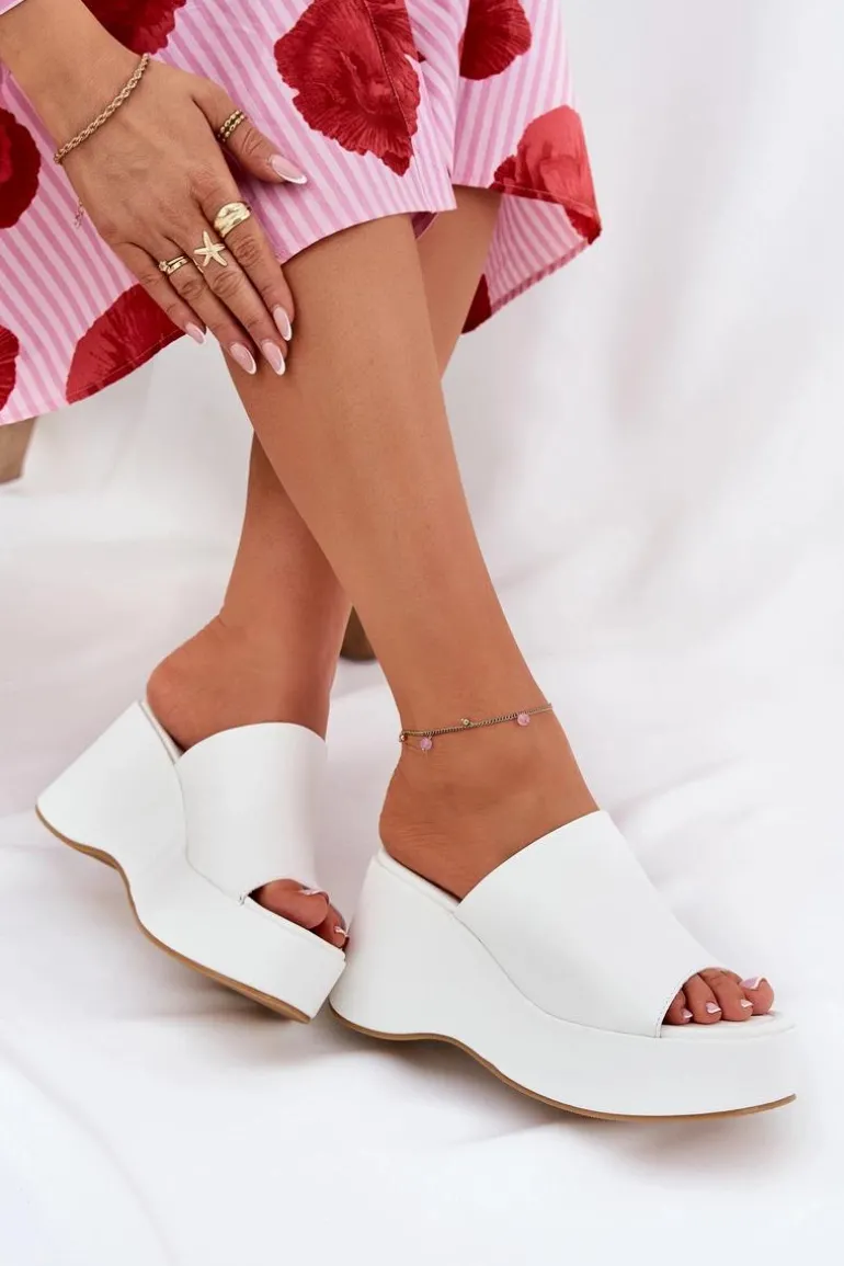 Stylowe klapki wykonane z eko skóry. Osadzone na platformie i koturnie, zapewniają stabilność i komfort przez cały dzień, jednocześnie optycznie wydłużając nogi i podkreślając sylwetkę. Miękka wkładka gwarantuje przyjemność noszenia, zapewniając odpowiednią amortyzację i wygodę podczas chodzenia. Te klapki doskonale sprawdzą się w codziennych stylizacjach, idealne do letnich sukienek, spódnic czy spodni. Przy wyborze rozmiaru prosimy sugerować się tabelą rozmiarów.