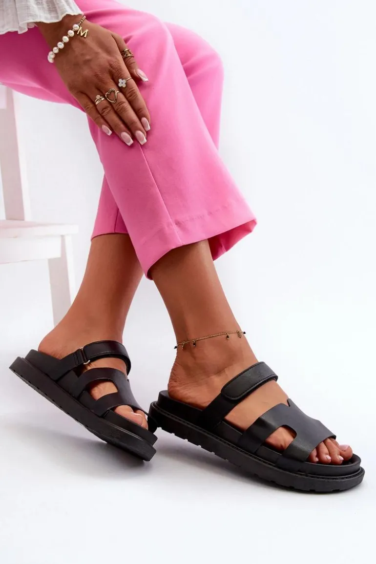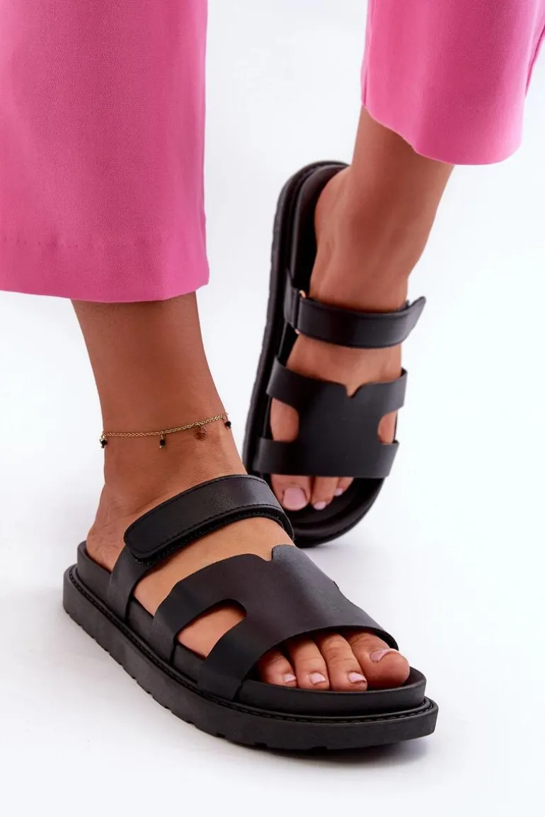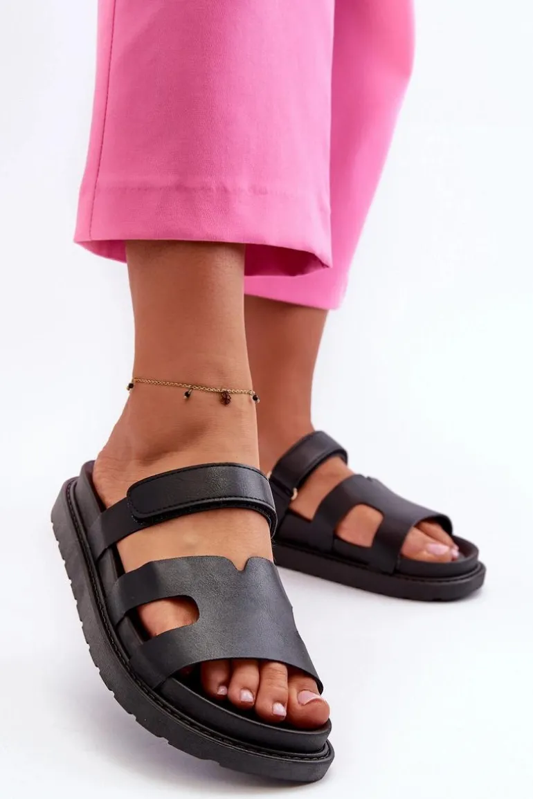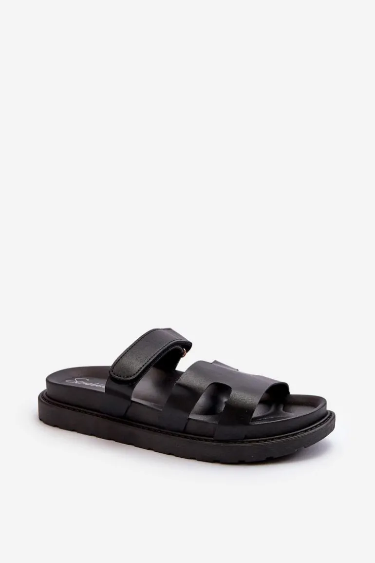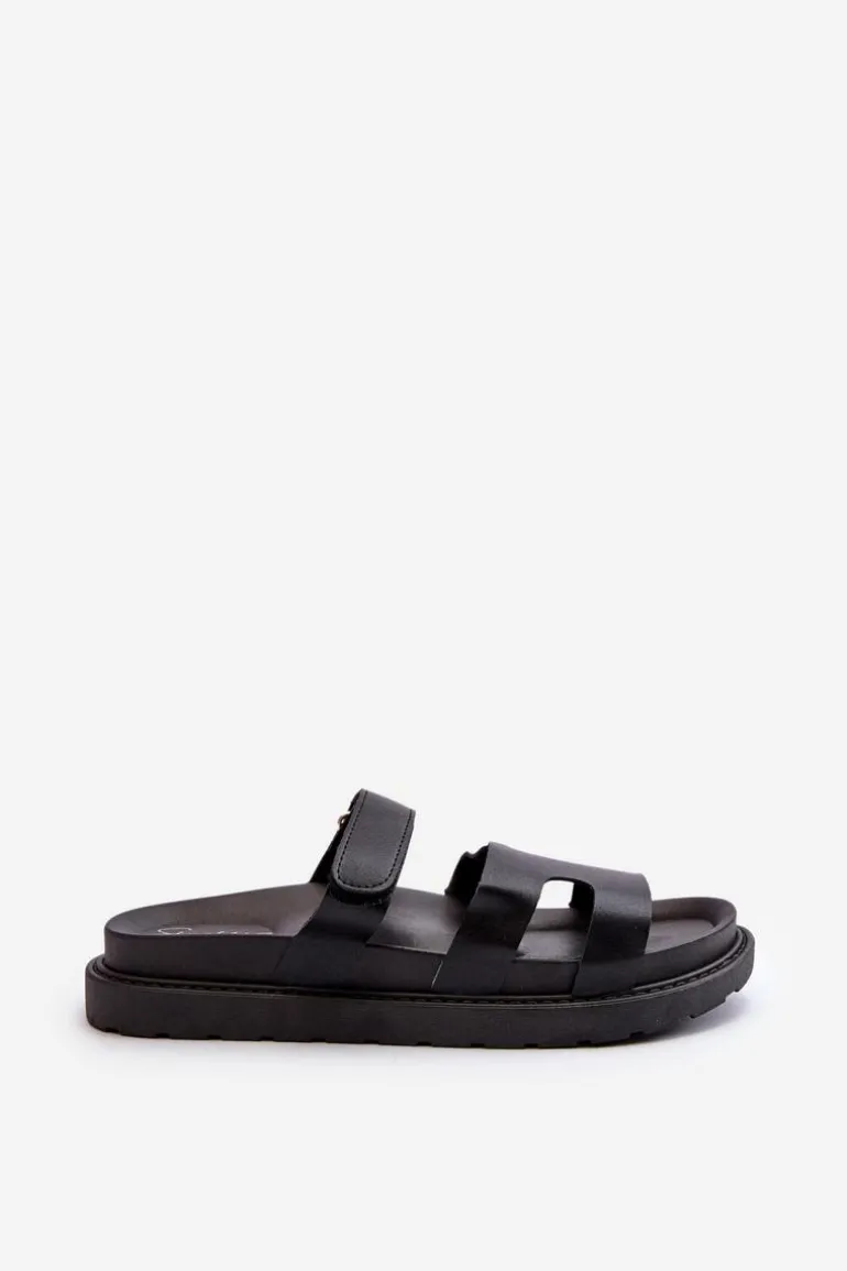Eko Skórzane Klapki Damskie Na Rzep Czarne Silaka