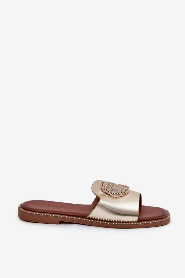Eleganckie damskie klapki z eko skóry to doskonały wybór na letnie dni. Posiadają płaski obcas, który gwarantuje komfort i stabilność. Ozdoba nadaje im wyjątkowego uroku, dzięki czemu świetnie sprawdzą się zarówno w codziennych stylizacjach, jak i na bardziej formalnych wydarzeniach. Przy wyborze rozmiaru prosimy sugerować się tabelą rozmiarów.