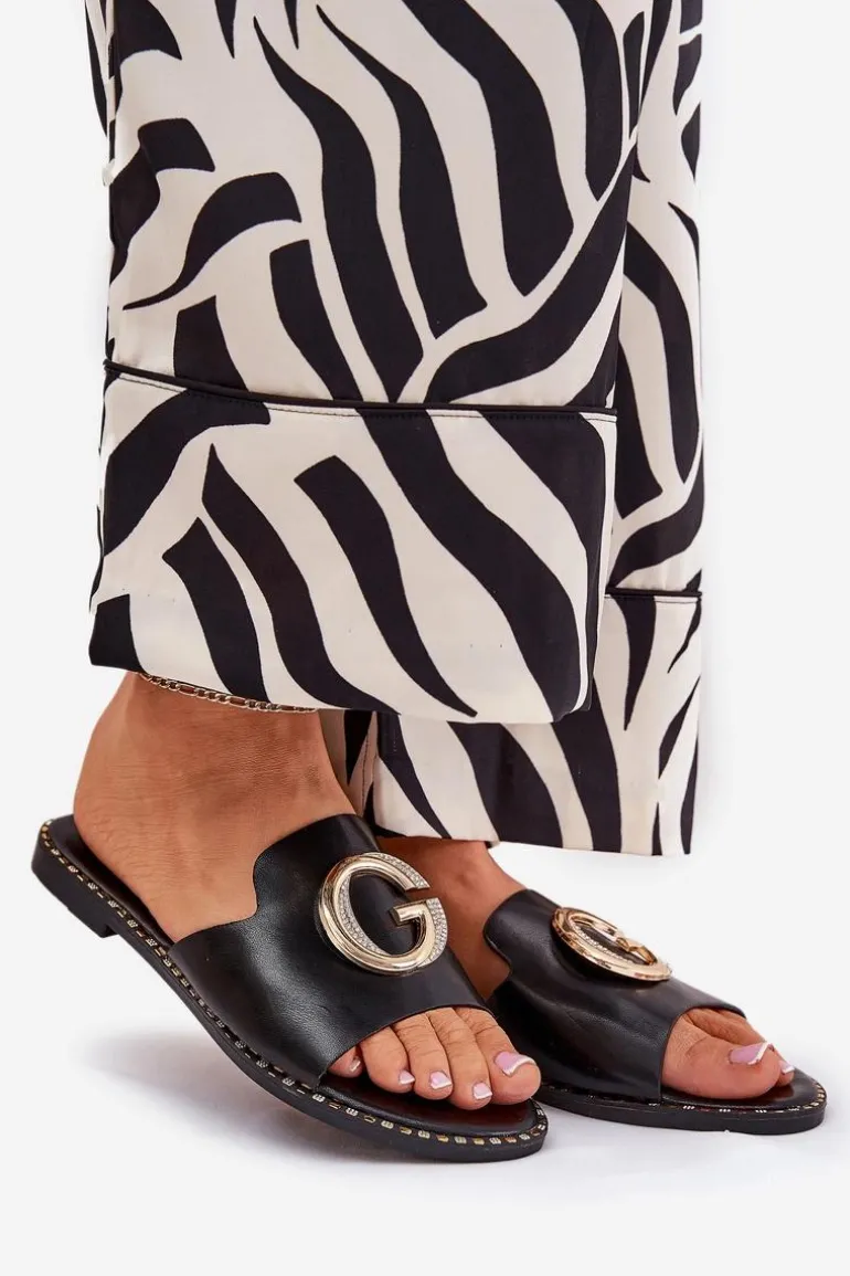 Eleganckie klapki damskie wykonane z wysokiej jakości eko skóry, osadzone na płaskim obcasie, który zapewnia wygodę i komfort podczas chodzenia. Z przodu znajduje się ozdobny detal, który nadają subtelnej elegancji. Idealne do codziennych stylizacji, świetnie komponują się zarówno z letnimi sukienkami, jak i casualowymi spodniami. Te klapki będą doskonałym wyborem na każdą okazję. Przy wyborze rozmiaru prosimy sugerować się tabelą rozmiarów.