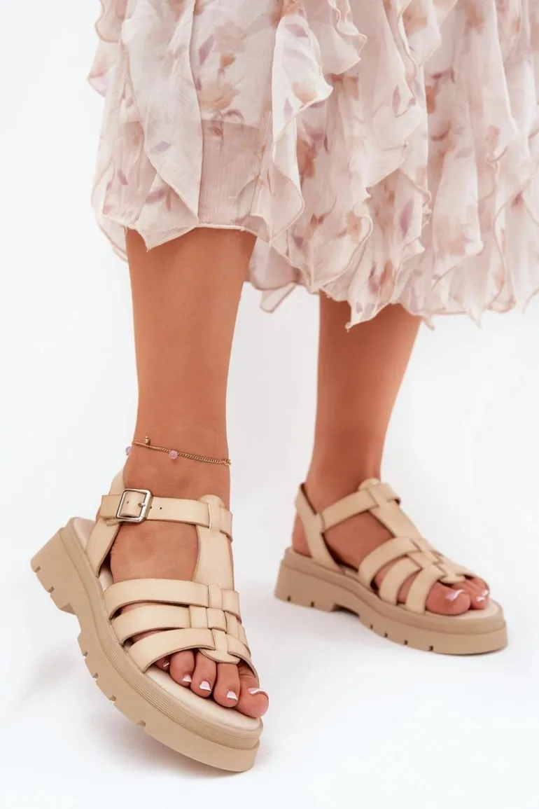 Sandały damskie wykonane z eko skóry. Osadzone na platformie, łączą komfort z modnym wyglądem. Zapinane na regulowany pasek ze sprzączką, co pozwala na idealne dopasowanie do stopy. Z przodu znajdują się paski, a miękka wkładka zapewnia wygodę przez cały dzień. Klasyczny fason sprawia, że te sandały będą doskonałym wyborem do wielu letnich stylizacji. Przy wyborze rozmiaru prosimy sugerować się tabelą rozmiarów.