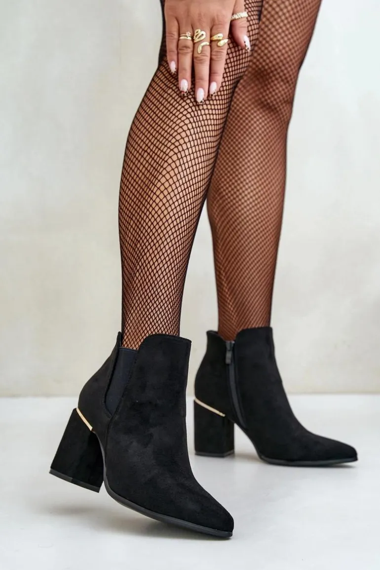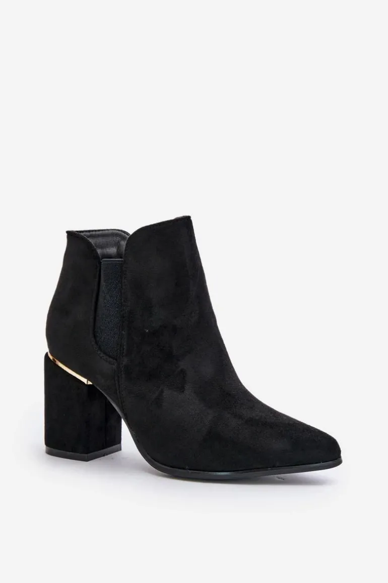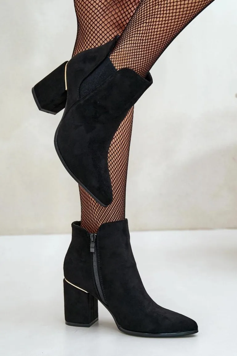 Botki damskie wykonane z miłego w dotyku eko zamszu. Osadzone na obcasie w formie słupka. Zamek umieszczony z boku cholewki ułatwia zakładanie, a usztywniany zapiętek dodaje butom trwałości i wsparcia. Wnętrze ocieplone kocem obuwniczym. Noski w szpic optycznie wysmuklą nogi. Koniecznie sprawdź także pozostałe modele botków dostępnych w naszej ofercie. Przy wyborze rozmiaru prosimy sugerować się tabelą rozmiarów.