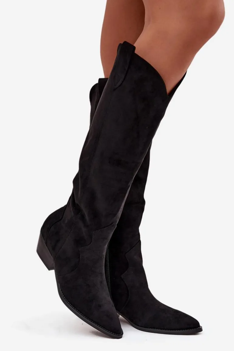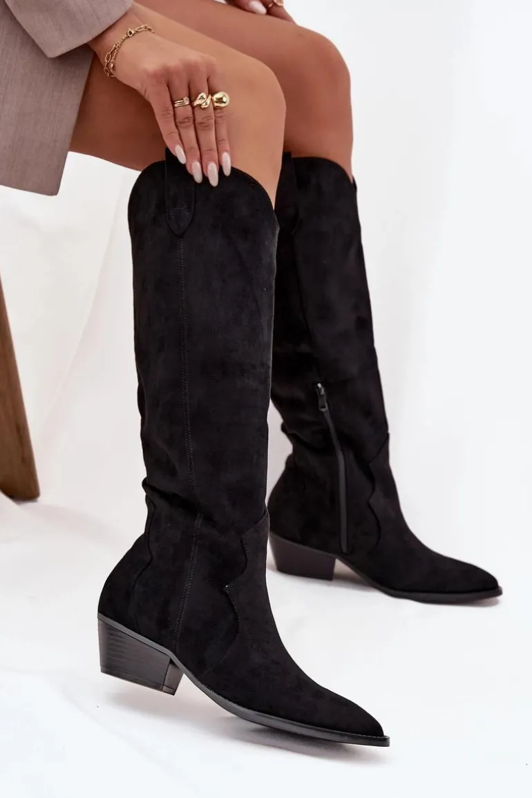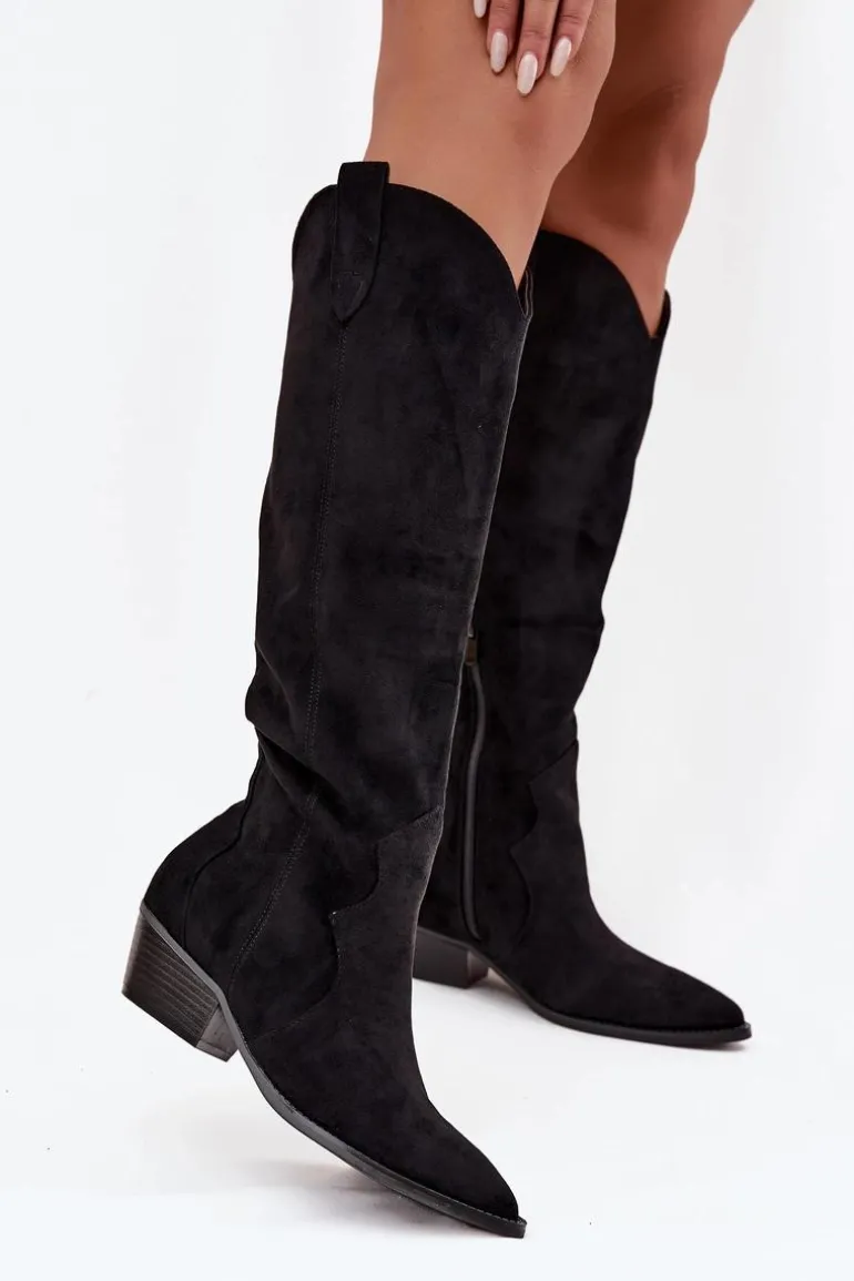 Stylowe kozaki kowbojki damskie z eko zamszu to absolutny hit sezonu! Model osadzony na ściętym obcasie i zakończony szpiczastym noskiem doskonale podkreśla nogę i dodaje stylizacji charakteru. Buty są wsuwane, a dodatkowy zamek na dole ułatwia zakładanie. Wykonane z miękkiego eko zamszu, idealnie wpisują się w modne, casualowe looki – świetnie wyglądają z sukienkami, spódnicami i jeansami typu skinny. Przy wyborze rozmiaru prosimy sugerować się poniższą tabelą rozmiarów.