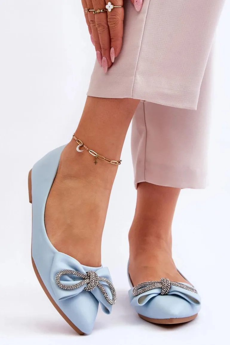 Eleganckie Baleriny Z Kokardą I Dżetami Niebieskie One Time