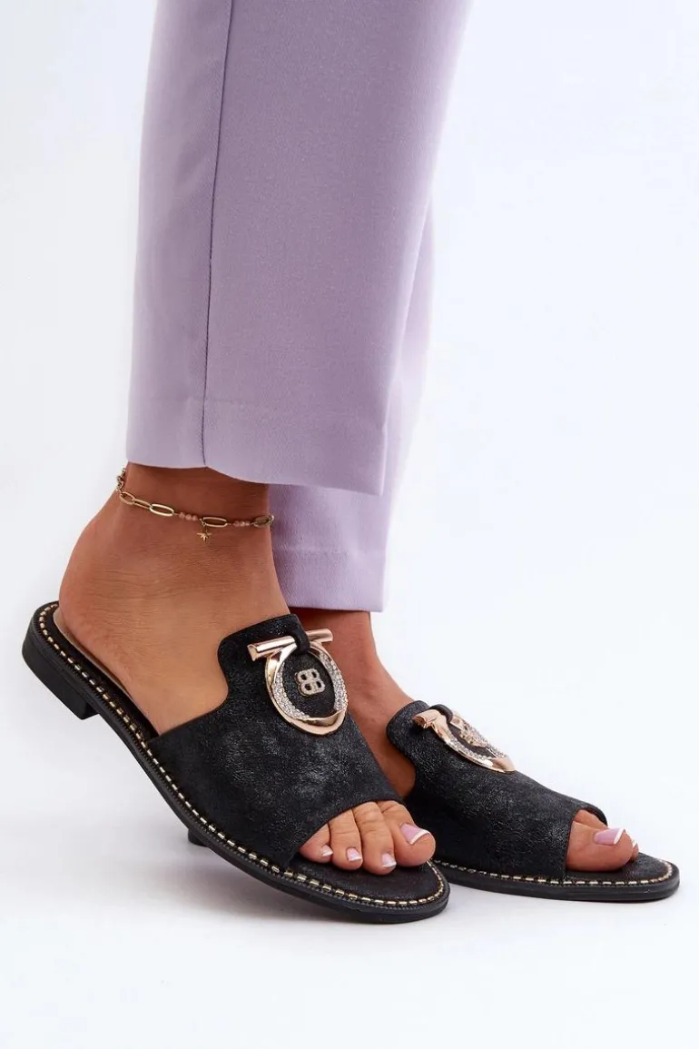 Eleganckie klapki damskie marki S.Barski są nie tylko stylowe, ale także wyjątkowo komfortowe. Osadzone na płaskim obcasie. Błyszczące ze złotą ozdobą. Miękka wkładka ze skóry naturalnej zapewni wygodę podczas użytkowania. Idealny wybór na wiele różnych okazji, doda wyrafinowanego uroku Twojej stylizacji. Przy wyborze rozmiaru prosimy sugerować się tabelą rozmiarów.