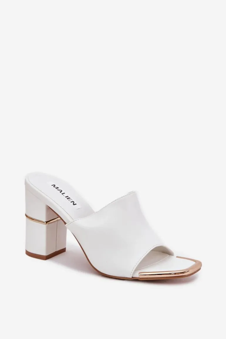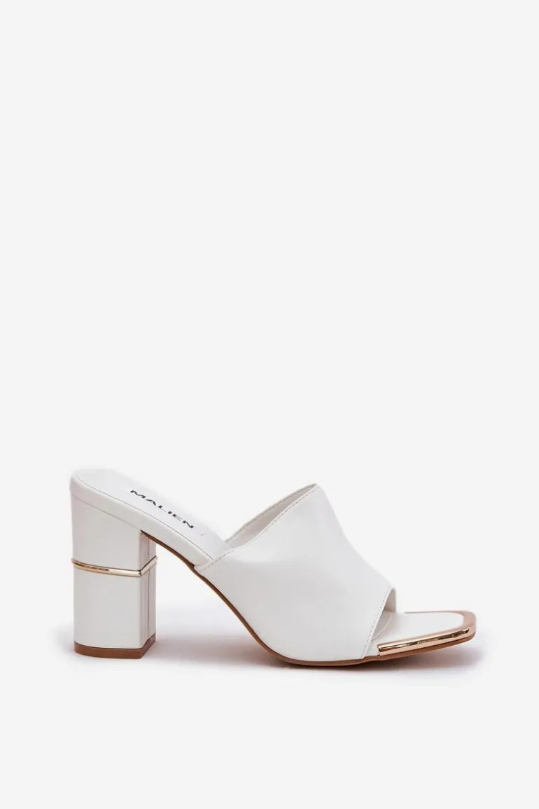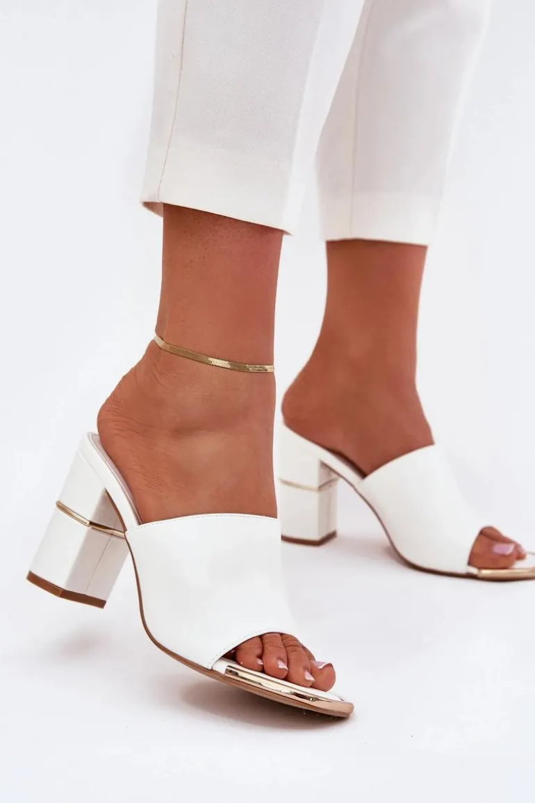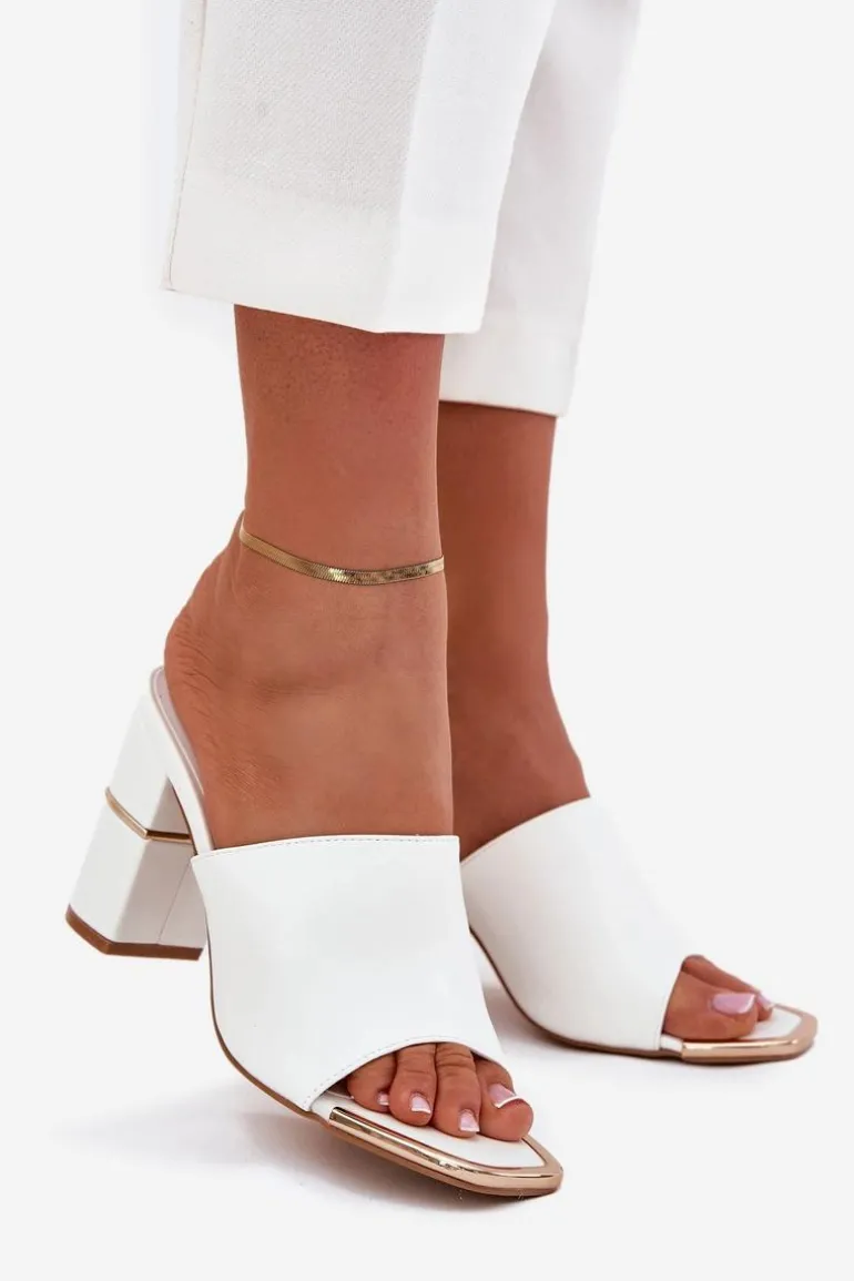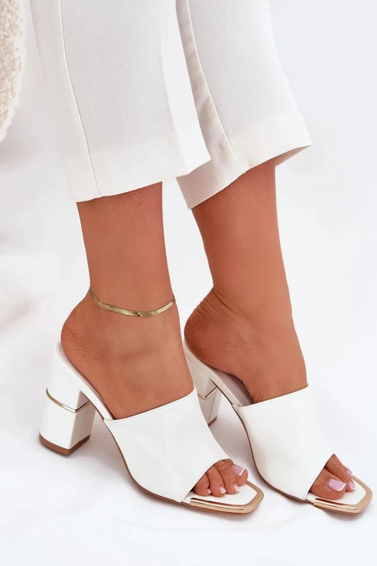 Eleganckie Klapki Damskie Na Słupku Białe Raiza