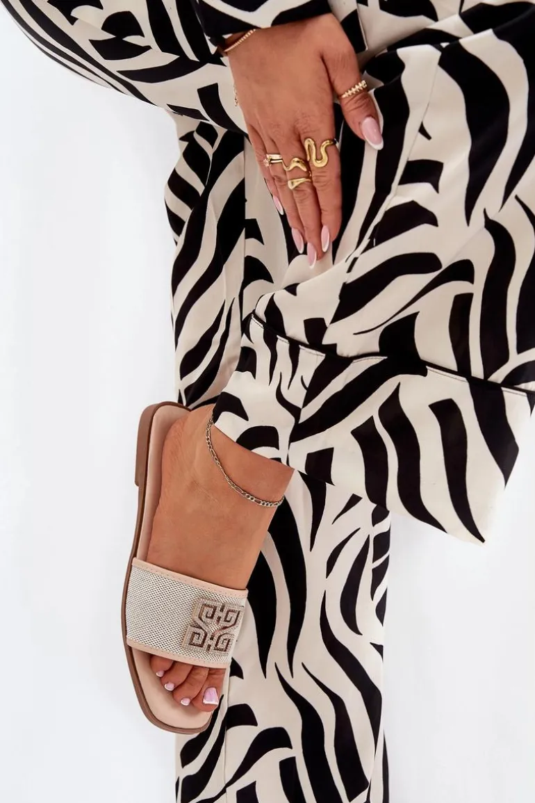 Damskie klapki na płaskim obcasie gwarantują komfort noszenia przez cały dzień. Ozdoba z lśniącymi cyrkoniami dodaje im delikatnego blasku. Ten model z pewnością podkreśli unikalny charakter Twojej letniej garderoby. Przy wyborze rozmiaru prosimy sugerować się tabelą rozmiarów.