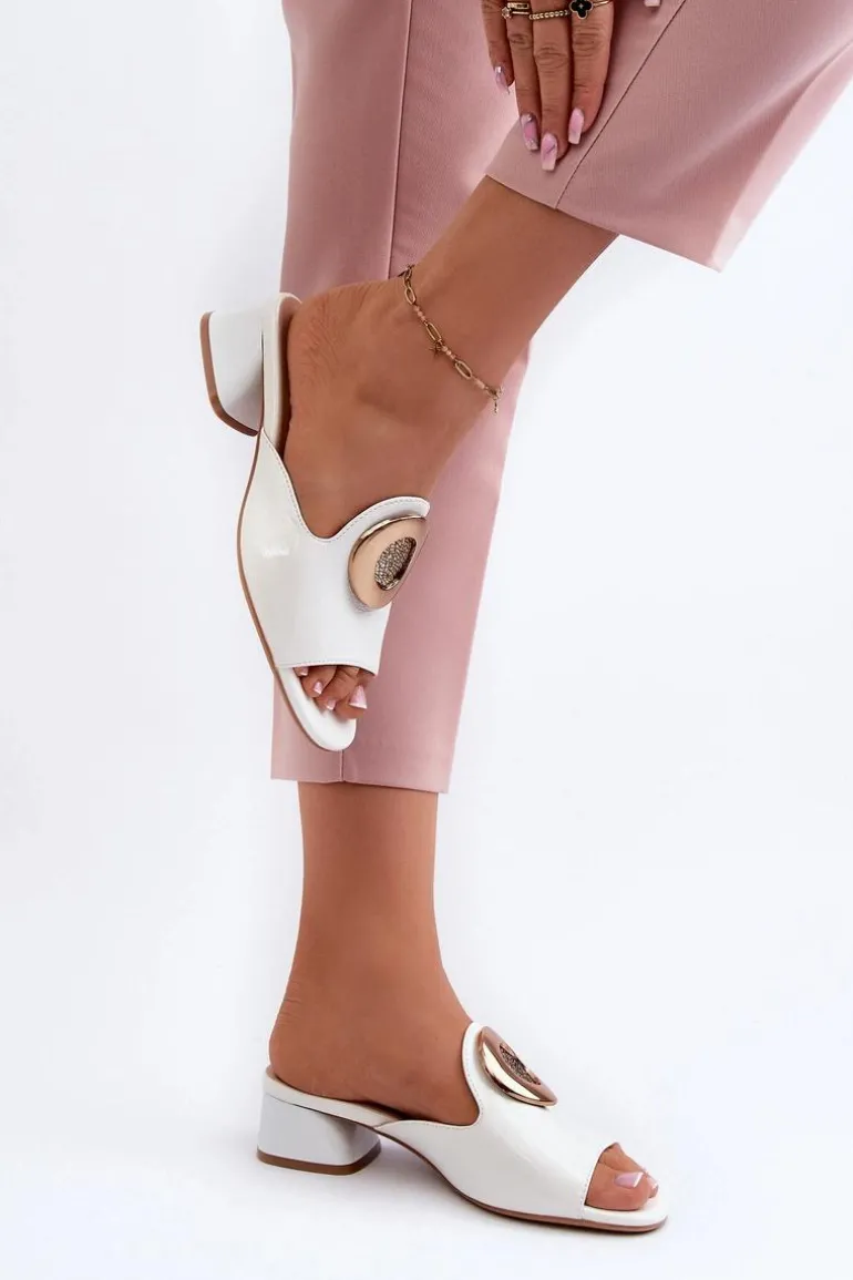 Klapki damskie marki Jezzi. Wykonane z eko skóry. Złota ozdoba dodaje elegancji i subtelności. Doskonale sprawdzą się zarówno na letnie spacery, jak i na wieczorne wyjścia. Dzięki niskiemu obcasowi można w nich czuć się wygodnie przez cały dzień, a jednocześnie prezentują się bardzo kobieco i modnie. Idealne na różne okazje, te klapki dodają blasku Twojej stylizacji. Przy wyborze rozmiaru prosimy sugerować się tabelą rozmiarów.