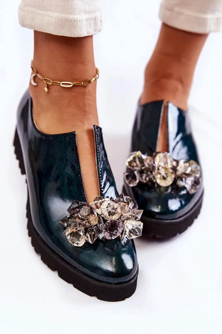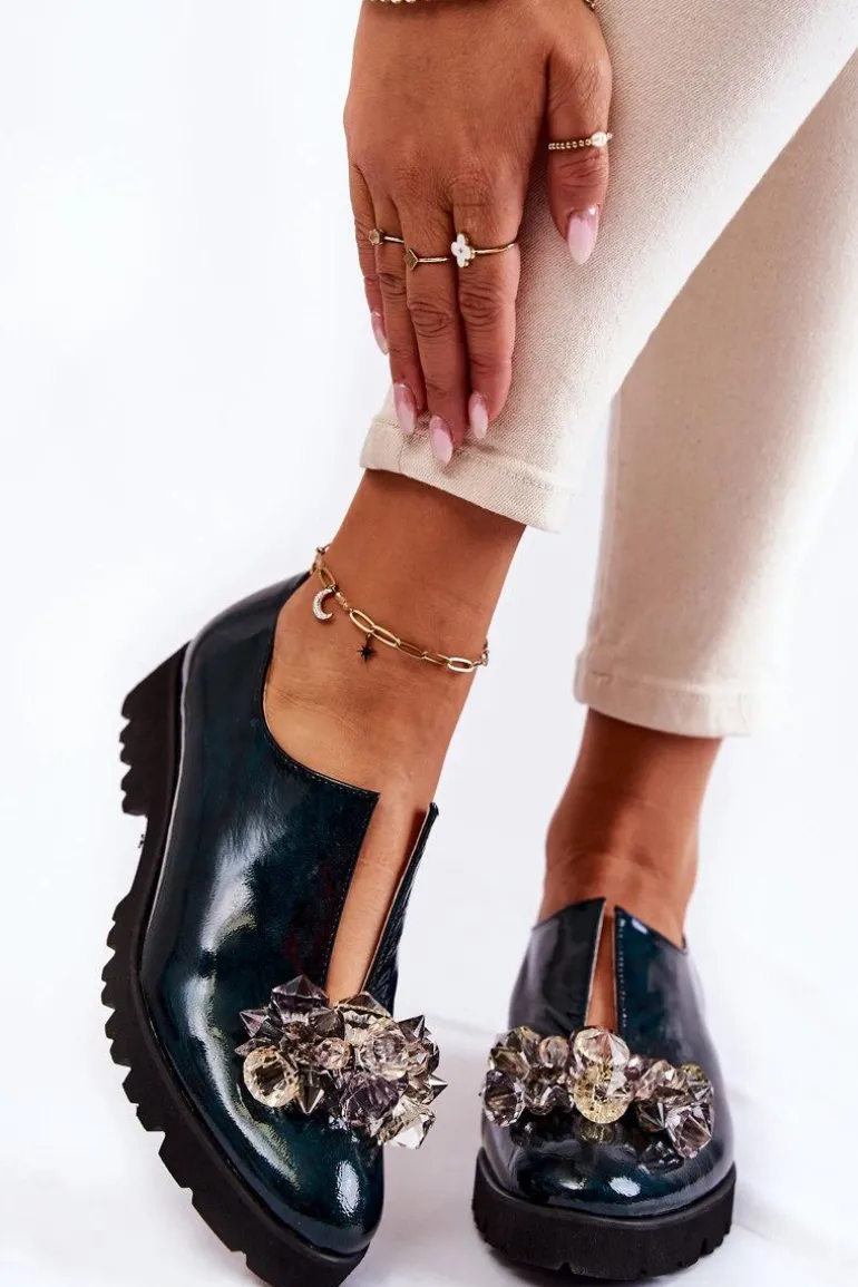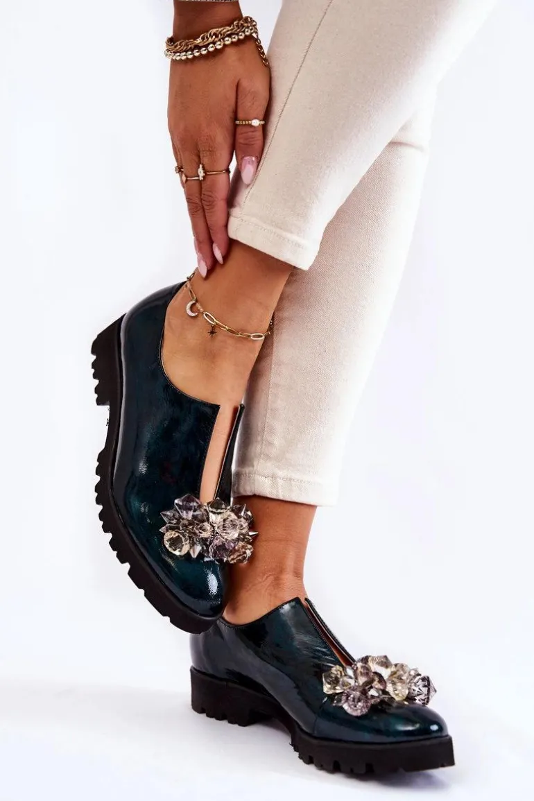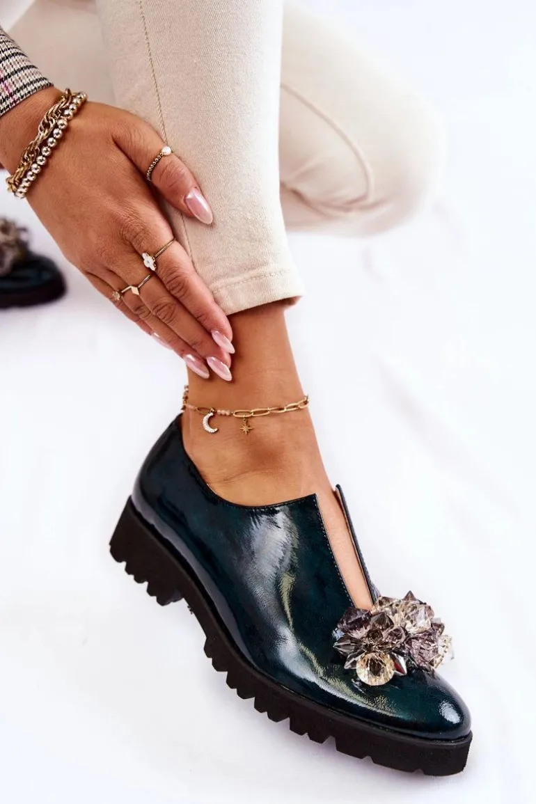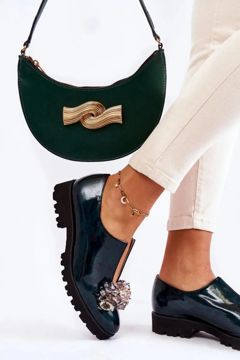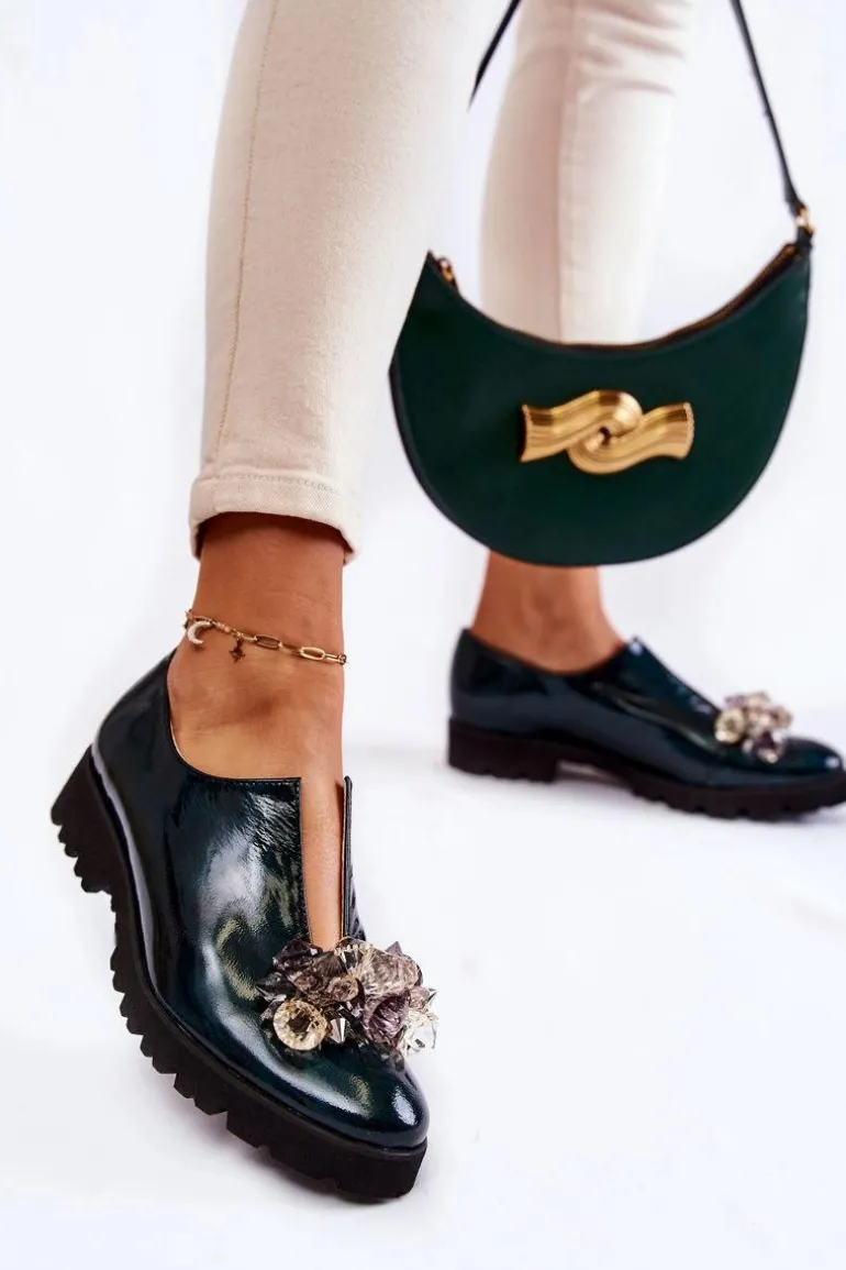 Eleganckie Lakierowane Półbuty Z Ozdobą Ciemnozielone Cindy