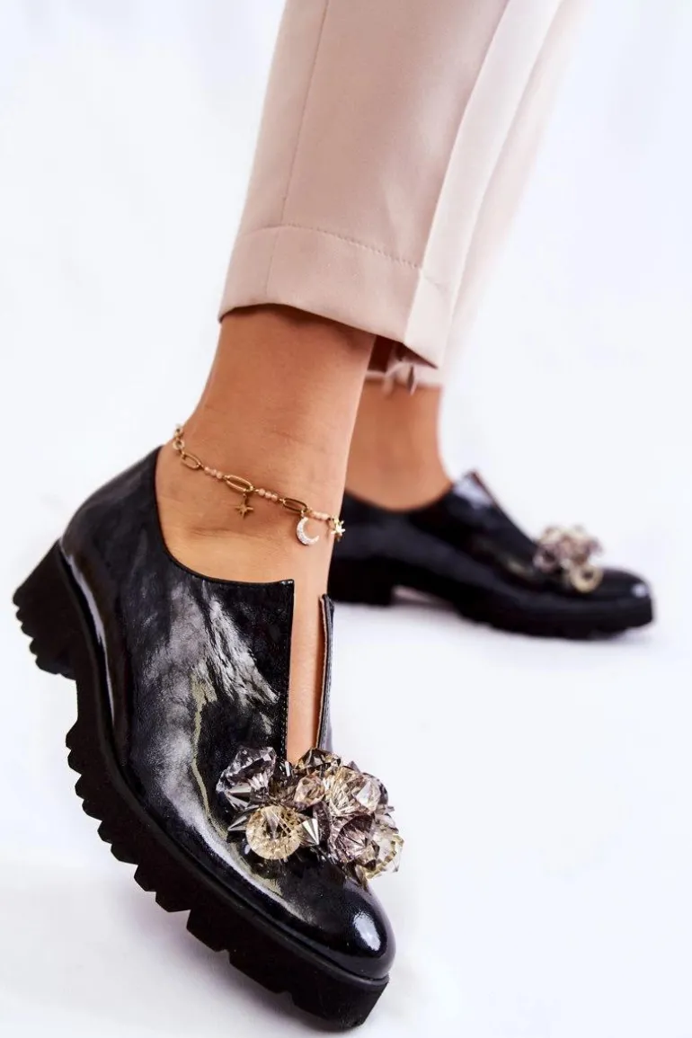 Eleganckie półbuty są wykonane z naturalnej skóry. Miękka wkładka daje poczucie komfortu na każdym kroku. Płaski obcas oraz traperowa podeszwa gwarantuje stabilność. Piękna ozdoba przyszyta na przodzie oraz rozcięcie sprawia, że są naprawdę wyjątkowe. Koniecznie sprawdź także pozostałe modele półbutów dostępnych w naszej ofercie! Przy wyborze rozmiaru prosimy sugerować się tabelą rozmiarów, która dostępna jest po najechaniu bądź kliknięciu w dany rozmiar.