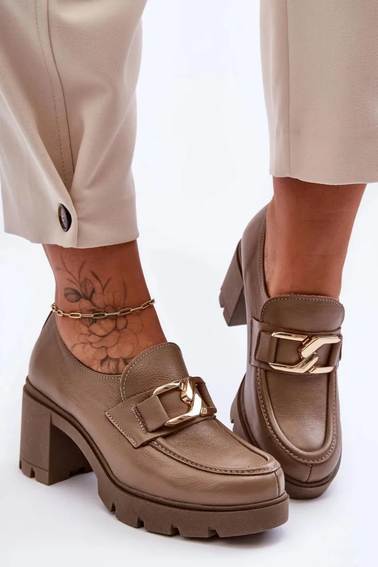 Cudowne półbuty na obcasie z cholewką wykonaną ze skóry naturalnej. Wnętrze zostało pokryte skórą naturalną oraz materiałem tekstylnym, dzięki temu są bardzo komfortowe w użytkowaniu. Wkładka ze skóry naturalnej, a podeszwa wykonana z gumowego tworzywa. Stylowy obcas w postaci szerokiego słupka zapewni stabilizację na każdym kroku. Lustrzana ozdoba na przodzie. Zapiętek jest usztywniany. Dodatkowo pod językiem znajduje się gumka ściągająca, która sprawi, że but będzie idealnie dopasowany do stopy. Przy wyborze rozmiaru prosimy sugerować się tabelą rozmiarów.