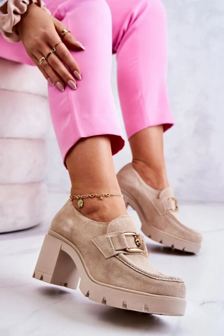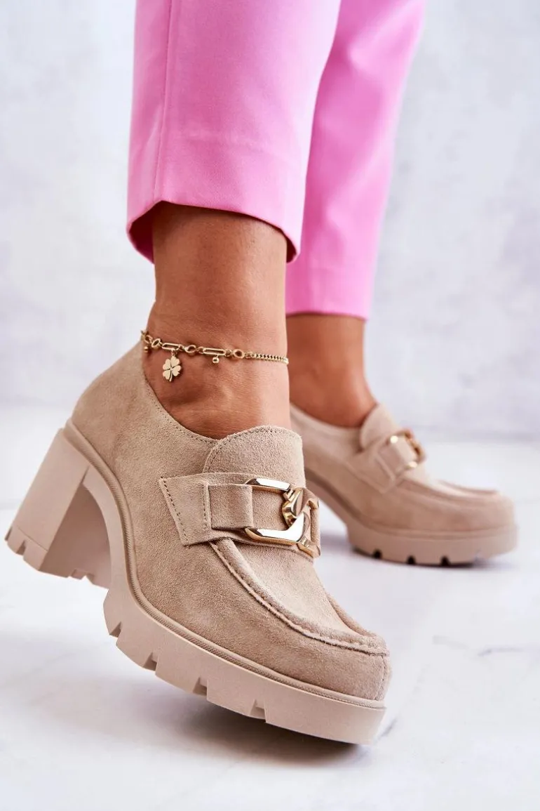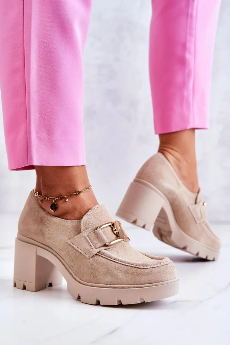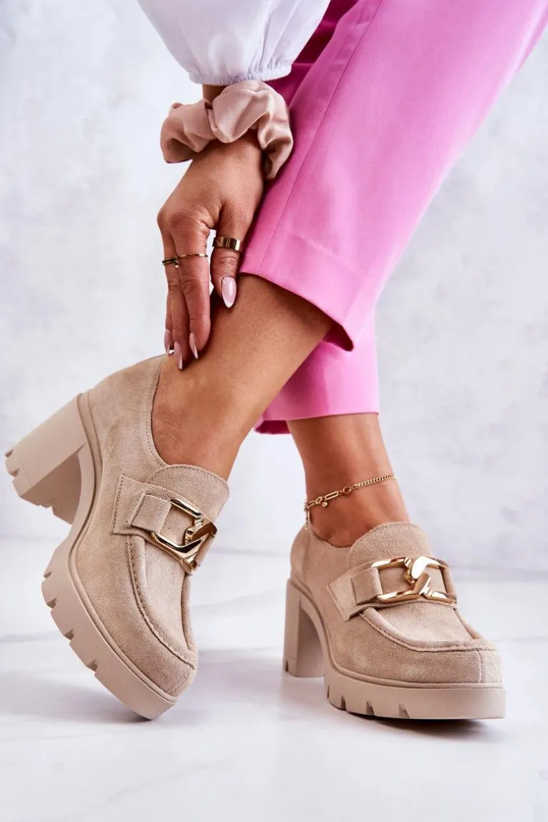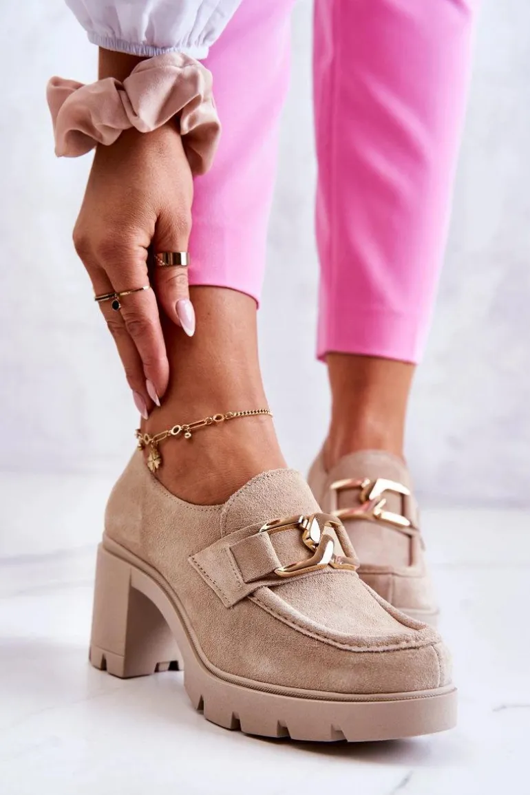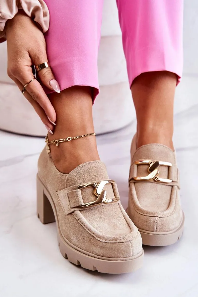 Eleganckie Półbuty Na Słupku Ze Złotą Ozdobą Jasnobeżowe Lemar Harmell
