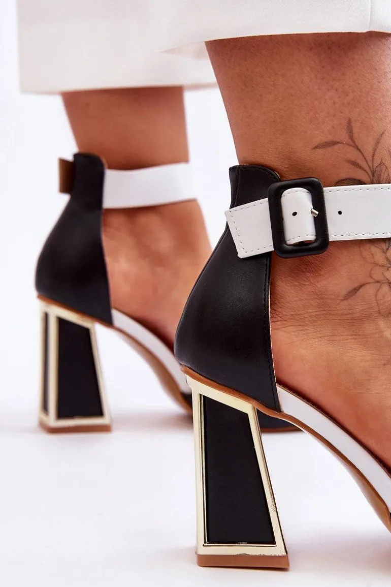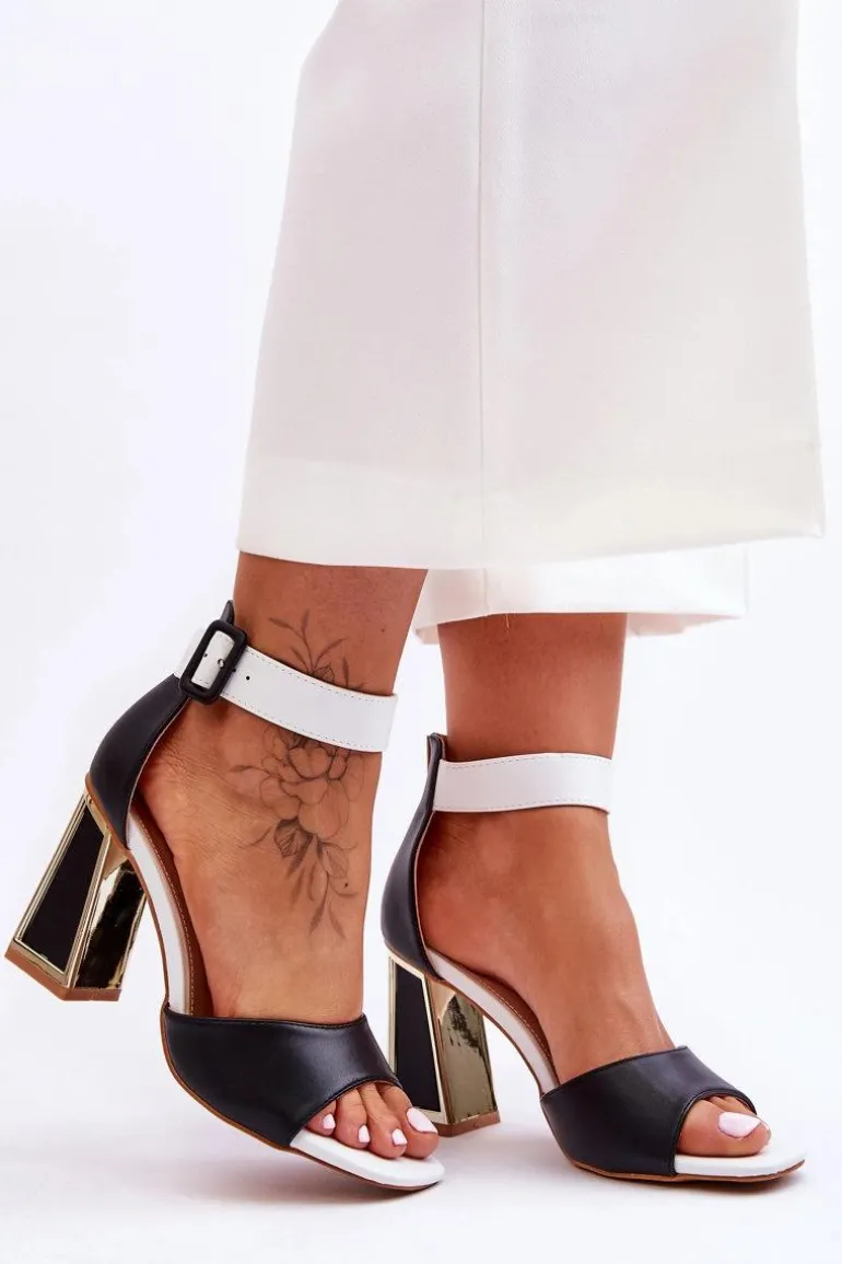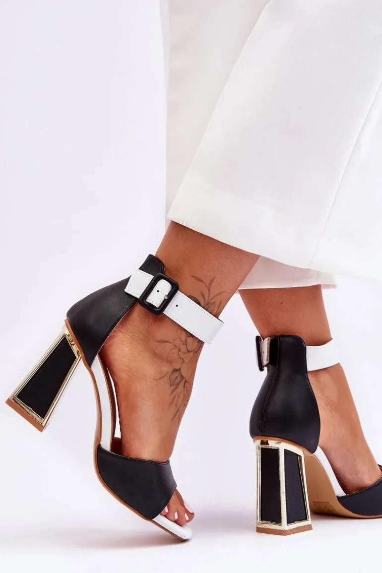 Damskie sandałki zostały wykonane z eko skóry. Świetnie sprawdzą się na wiele okazji podczas letniego sezonu! Miękka wkładka zapewni wygodne użytkowanie. Sandałki posiadają usztywniany zapiętek. Zapinane wokół kostki na regulowany pasek ze sprzączką. Model ten został osadzony na obcasie w postaci zdobionego słupka. Przy wyborze rozmiaru prosimy sugerować się tabelą rozmiarów.