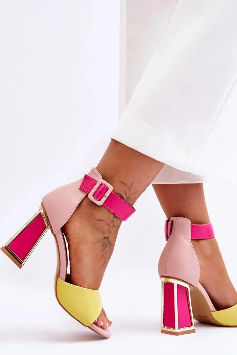 Damskie sandałki zostały wykonane z eko skóry. Świetnie sprawdzą się na wiele okazji podczas letniego sezonu! Miękka wkładka zapewni wygodne użytkowanie. Sandałki posiadają usztywniany zapiętek. Zapinane wokół kostki na regulowany pasek ze sprzączką. Model ten został osadzony na obcasie w postaci zdobionego słupka. Przy wyborze rozmiaru prosimy sugerować się tabelą rozmiarów.