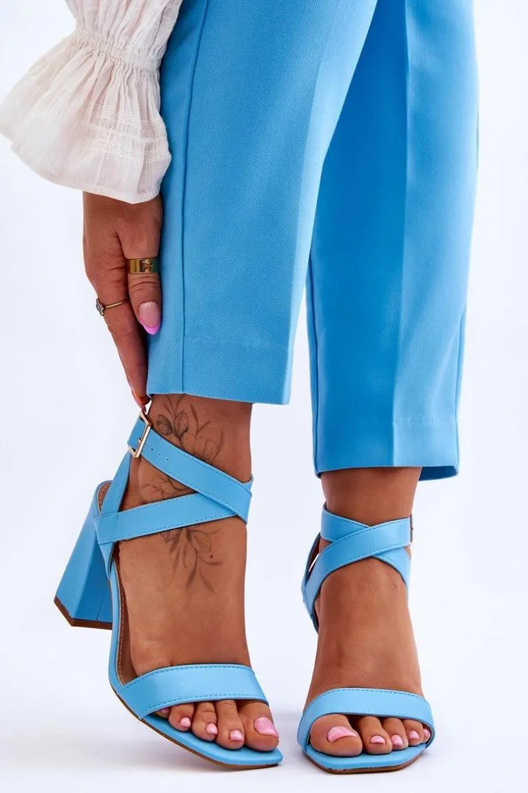 Eleganckie Sandały Na Słupku Jasnoniebieskie Michele