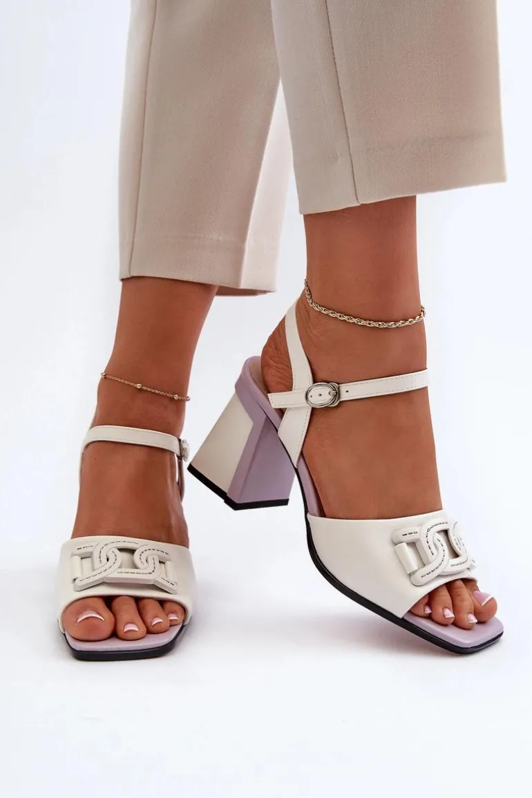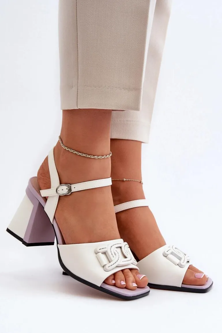 Eleganckie sandały wykonane z wysokiej jakości eko skóry, są zarówno modne, jak i trwałe. Osadzone na obcasie w postaci słupku. Zapinane na regulowany pasek ze sprzączką. Ozdoba z przodu dodaje im niepowtarzalnego uroku. Doskonale sprawdzą się na różne okazje, dodając szyku i klasy każdej kreacji! Przy wyborze rozmiaru prosimy sugerować się tabelą rozmiarów.