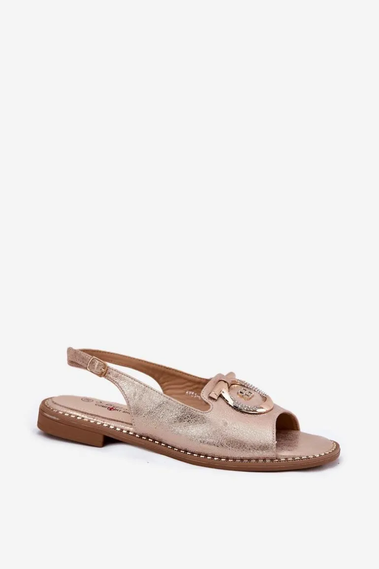 Eleganckie sandały damskie od marki S.Barski to doskonały wybór na ciepłe dni. Wykonane z eko skóry, Model osadzony jest na płaskim obcasie, co zapewnia komfort przez cały dzień. Z przodu sandałów znajduje się subtelny, ozdobny element, który dodaje im wyjątkowego charakteru. Zapinane na sprzączkę z regulowanym paskiem, umożliwiają idealne dopasowanie do stopy. Wkładka z naturalnej skóry gwarantuje wygodę i oddychalność, co sprawia, że sandały są idealne podczas dłuższego użytkowania. Przy wyborze rozmiaru prosimy kierować się tabelą rozmiarów.