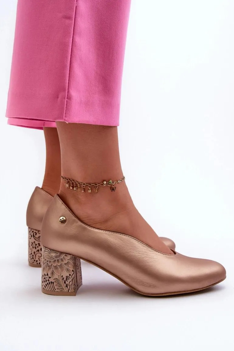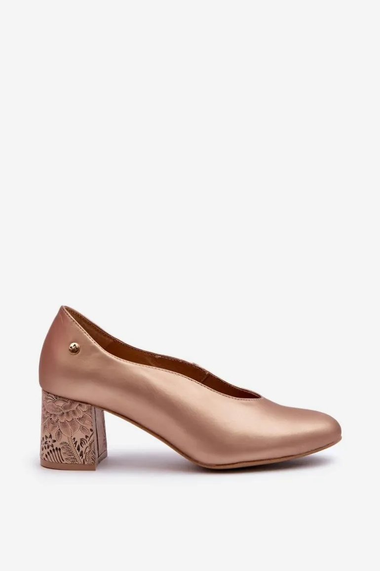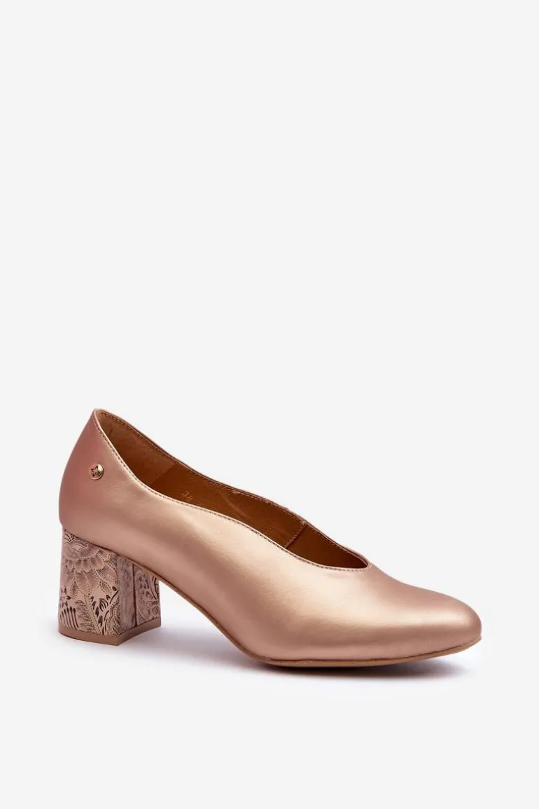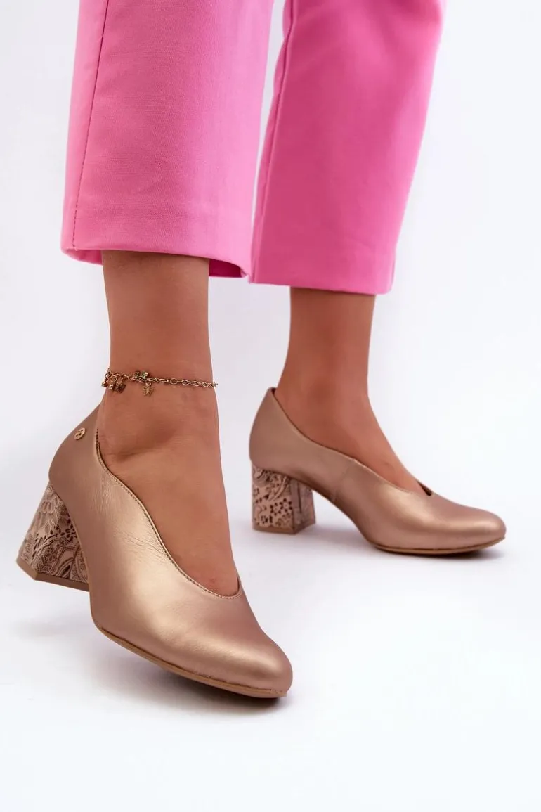 Eleganckie Skórzane Czółenka Na Słupku Maciejka 06422-25 Złote