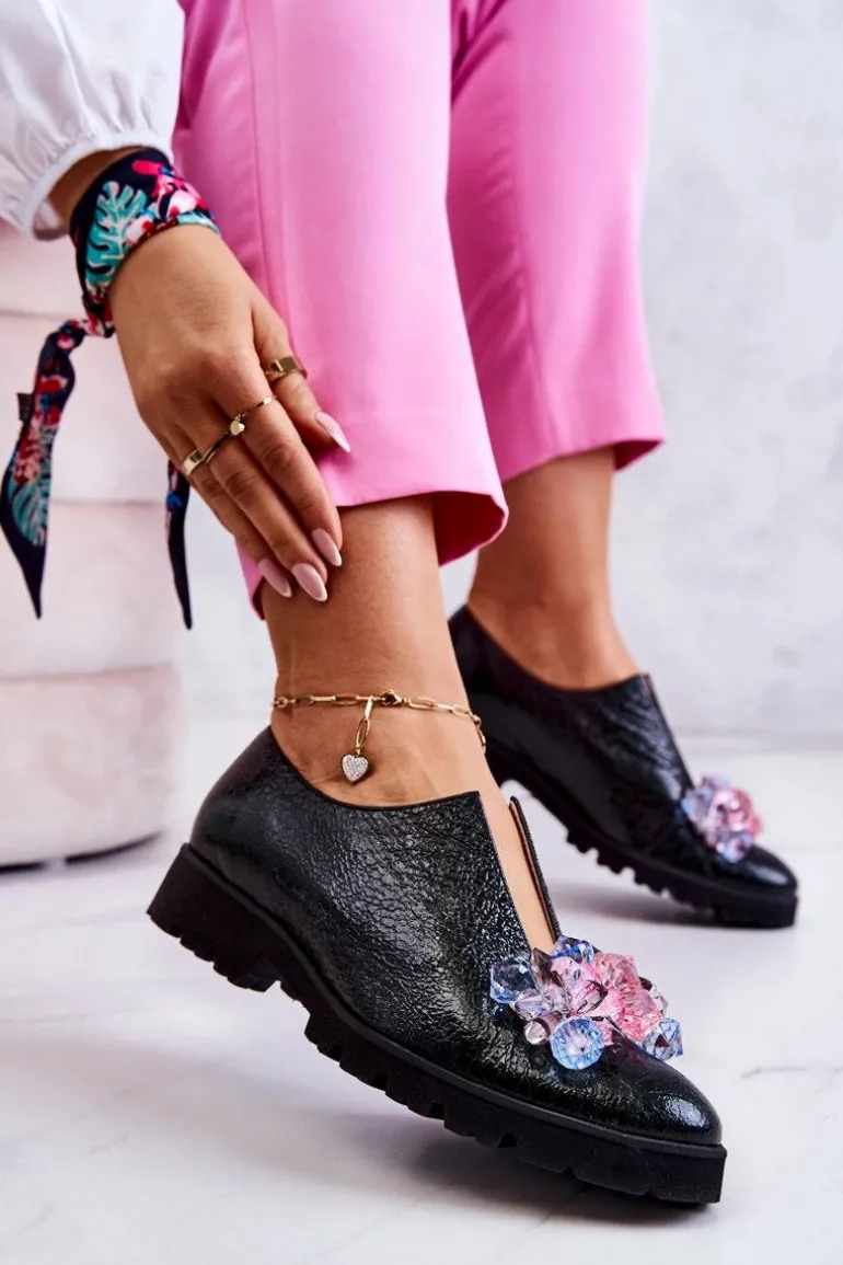 Eleganckie Skórzane Półbuty Z Ozdobą Ciemnozielone Cindy