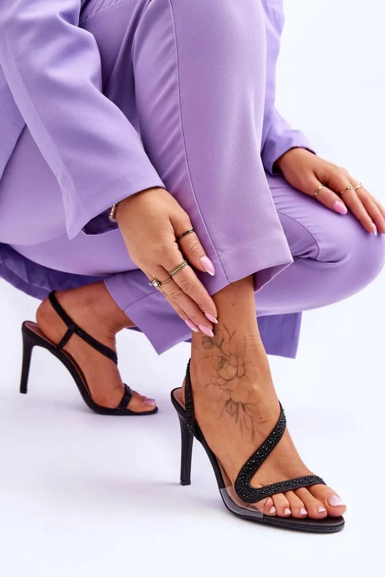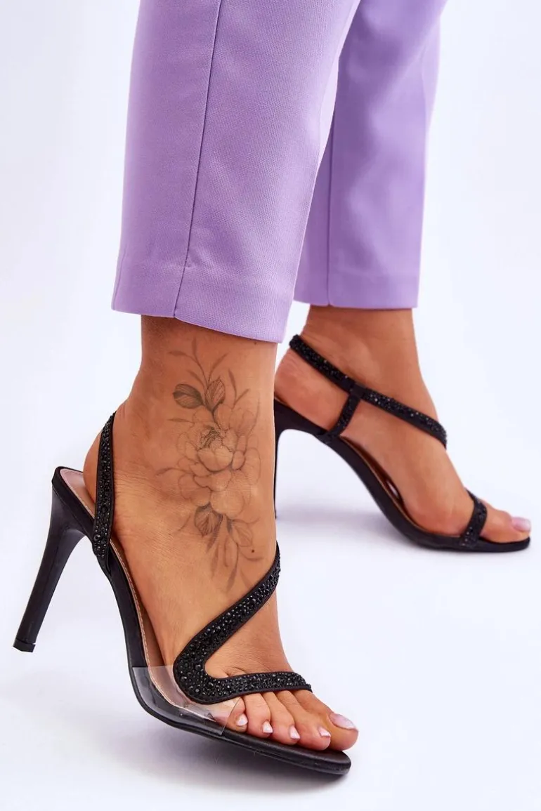 Eleganckie Wsuwane Sandałki Na Obcasie Czarne Colima