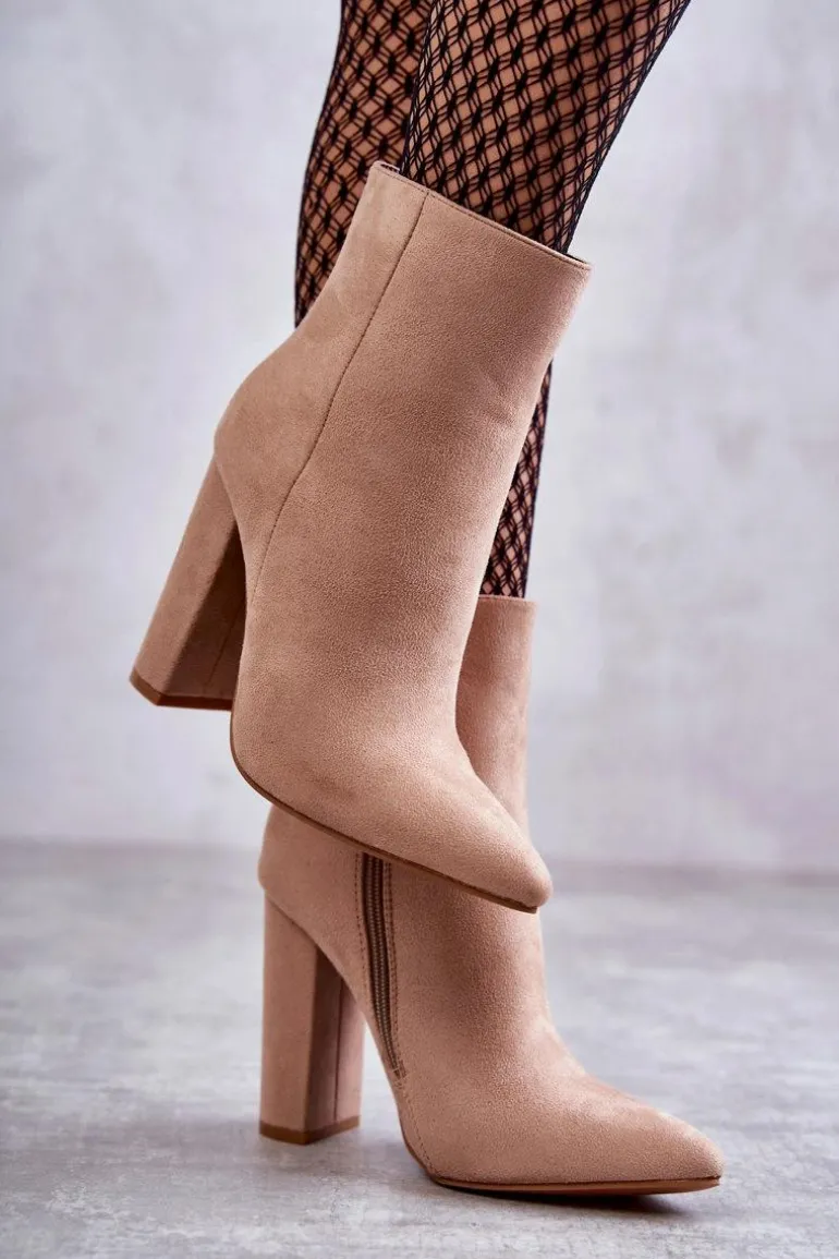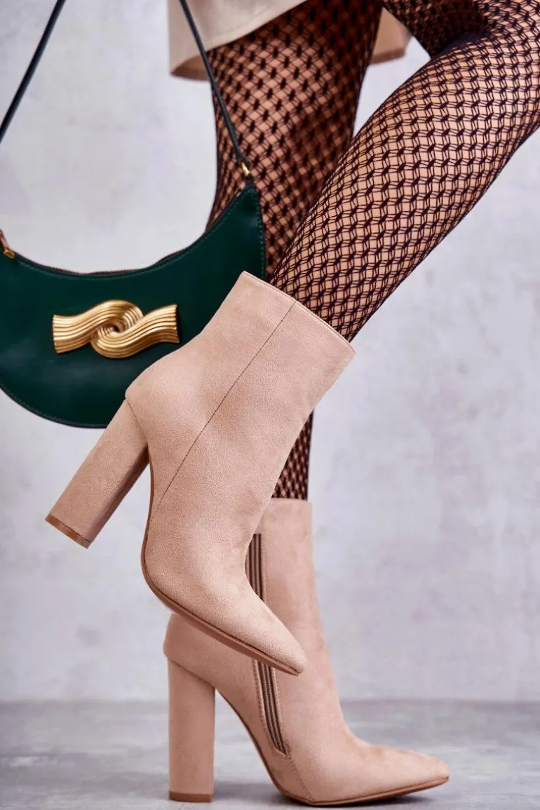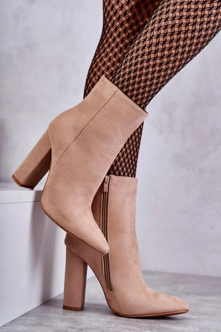 Wyjątkowe botki damskie osadzone na obcasie w postaci słupka. Model z cholewką za kostkę. Wykonane z przyjemnego w dotyku eko zamszu. Ocieplone w środku kocem obuwniczym. Botki te posiadają usztywniany zapiętek. Model ten zachwyci niejedną miłośniczkę wysokich obcasów! Koniecznie powinnaś mieć je w swojej szafie! Przy wyborze rozmiaru prosimy sugerować się tabelą rozmiarów.