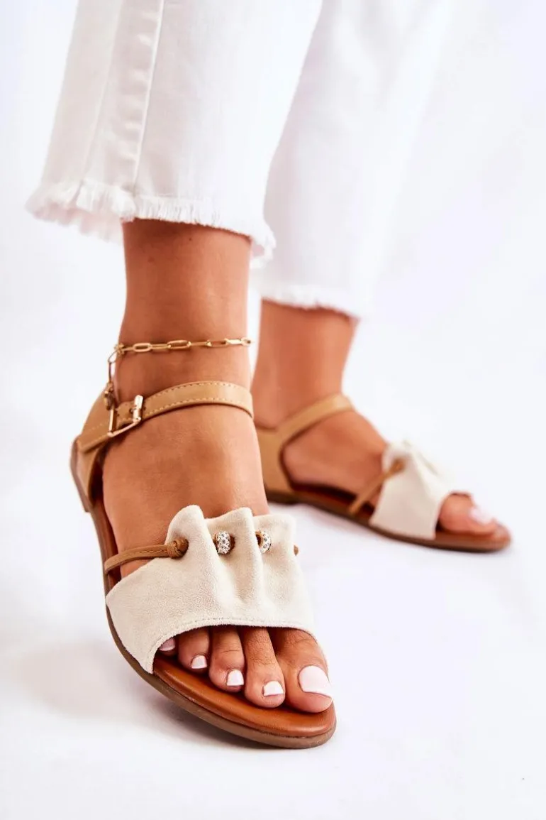 Wyjątkowe sandały damskie marki wykonane są z eko zamszu z dbałością o detale. Wkładka ze eko skóry oraz antypoślizgowa podeszwa zadbają o Twoją wygodę! Koniecznie sprawdź całą naszą kolekcję sandałek! Przy wyborze rozmiaru prosimy kierować się tabelą rozmiarów.