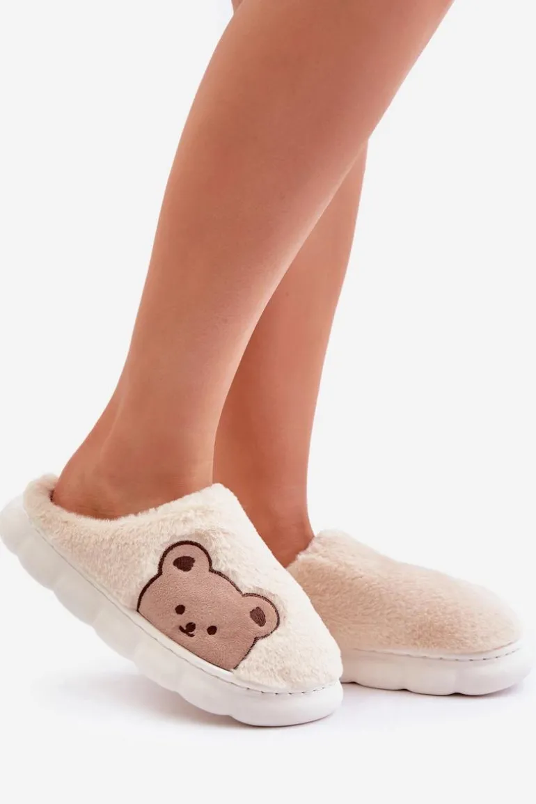 Futrzane Kapcie Damskie Misie Jasnobeżowe Firedi