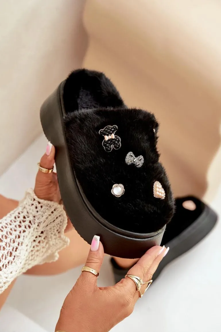 Futrzane kapcie damskie na grubej podeszwie to idealne połączenie stylu i komfortu. Wykonane z miękkiego, przytulnego futerka, zapewniają ciepło i wygodę na chłodne dni. Zakryte noski dodatkowo chronią stopy przed zimnem, a urocze przypinki dodają im wyjątkowego, modnego charakteru. Doskonałe zarówno do domowego relaksu, jak i na szybkie wyjścia na zewnątrz. Przy wyborze rozmiaru prosimy sugerować się tabelą rozmiarów.